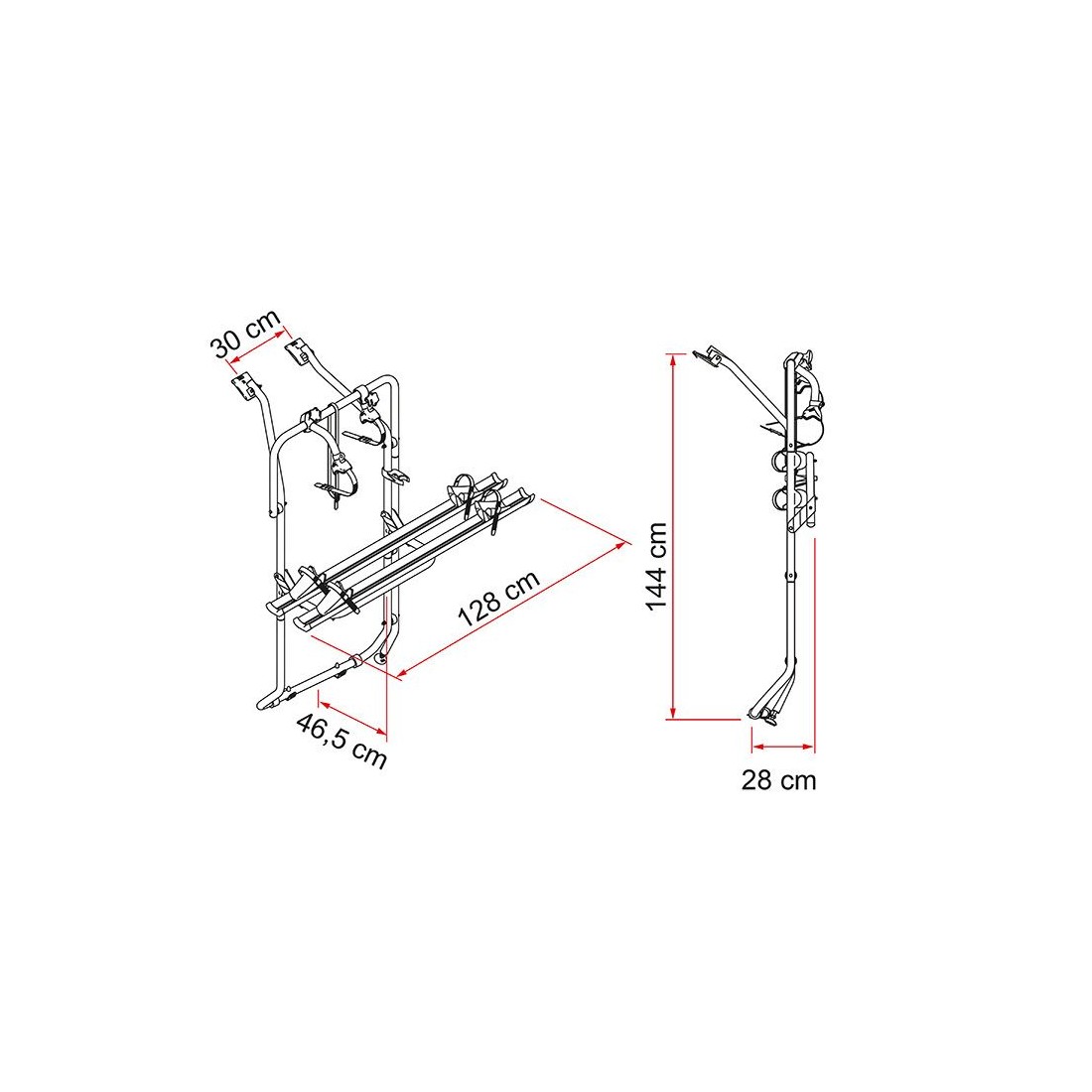 Portabicicletas específico para Volkswagen T5 y T6 resistente y seguro. Permite el transporte de 2 bicicletas en la zona trasera.