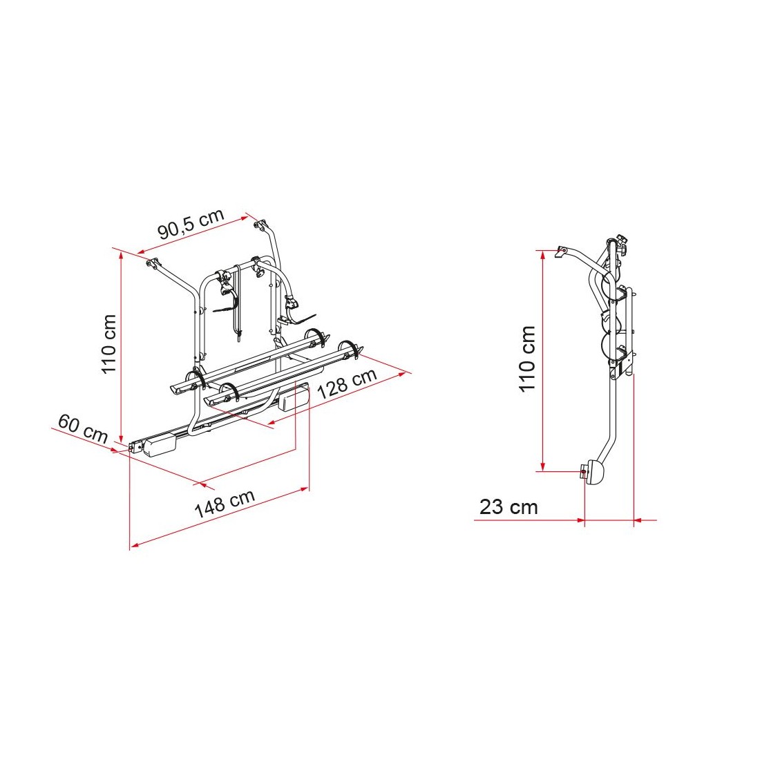 Portabicicletas específico para Mercedes Viano, Mercedes Viano Marco Polo y Mercedes Vito W639 desde 2003 hasta 2014 resistente y seguro. Permite el transporte de 2 bicicletas en la zona trasera (ampliable hasta 3).
