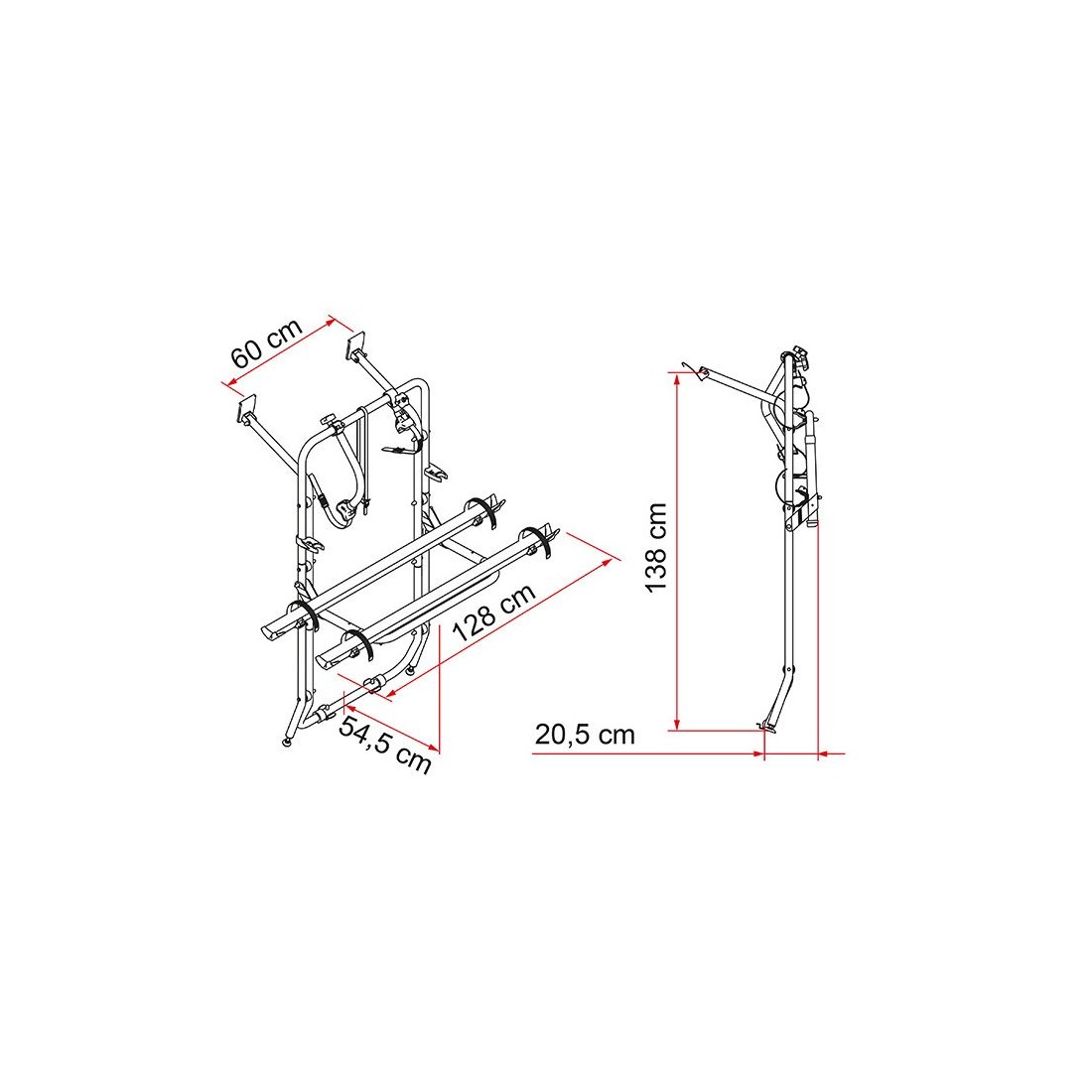 Portabicicletas específico para Mercedes Viano Marco Polo y Mercedes Vito W638 desde 1996 hasta 2003 resistente y seguro. Permite el transporte de 2 bicicletas en la zona trasera (ampliable hasta 4) y es compatible con bicicletas eléctricas.