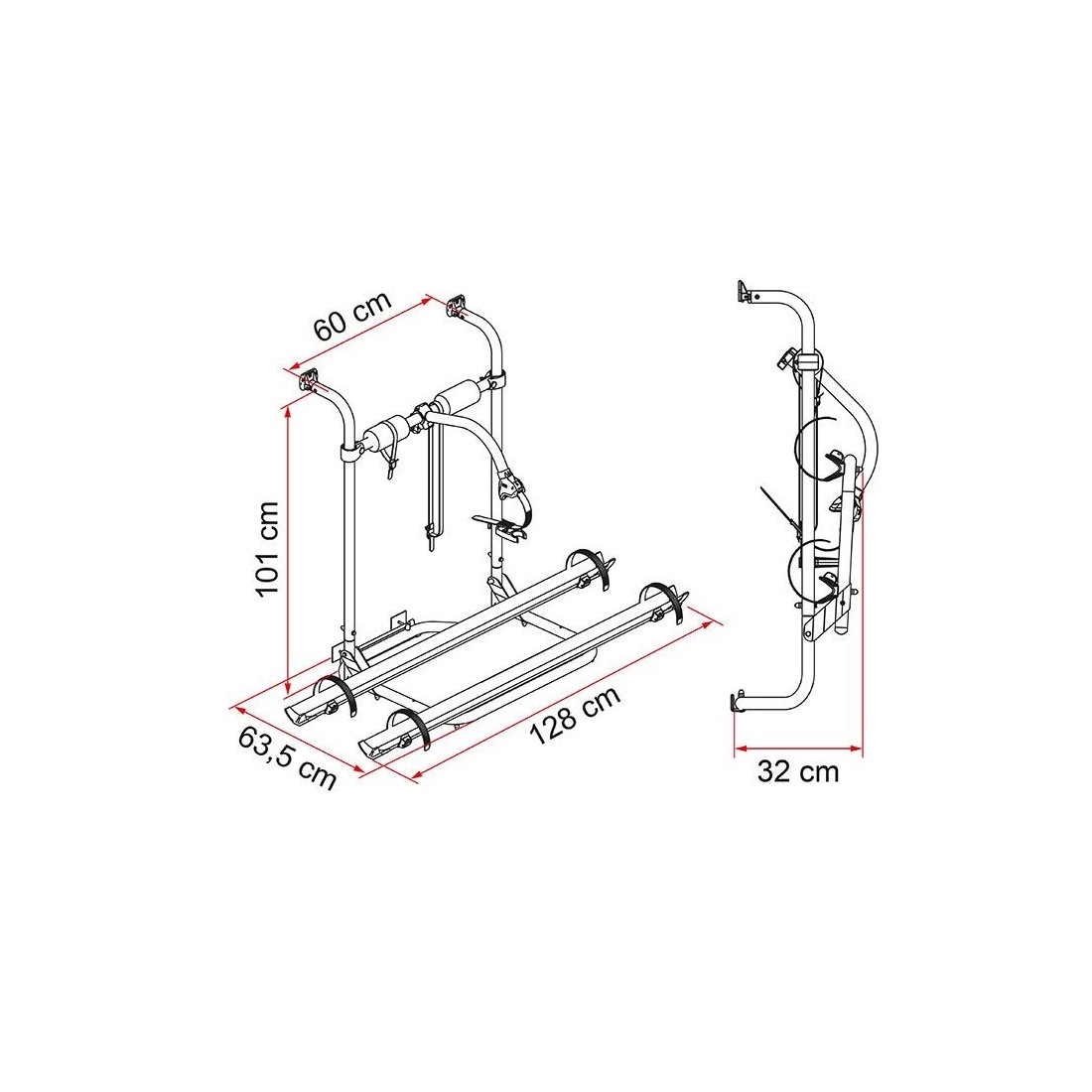 Portabicicletas específico para caravana Hobby (modelos a partir de 2003) que permite el transporte de 2 bicicletas en la zona trasera.