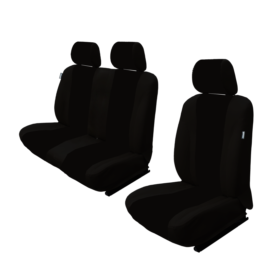 Mantenha os bancos do seu veículo industrial em perfeito estado com este conjunto completo e específico para a parte dianteira (2+1). As capas protetoras foram projetadas para uso intensivo em vans e veículos comerciais.