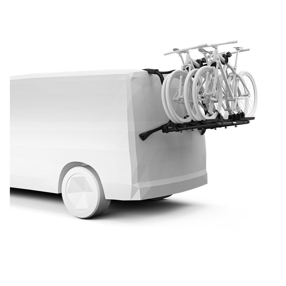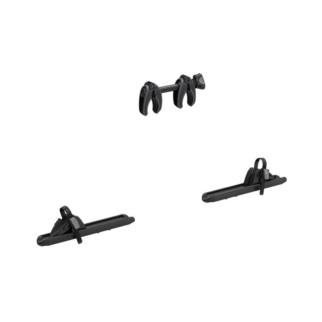 Fácil montagem das bicicletas usando braços destacáveis com limitadores de aperto bloqueáveis Thule AcuTight que clicam quando o aperto ideal é alcançado.