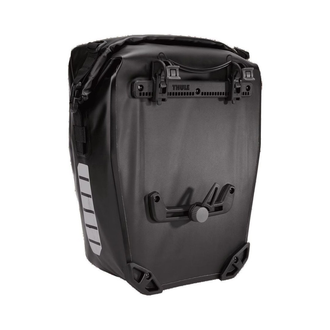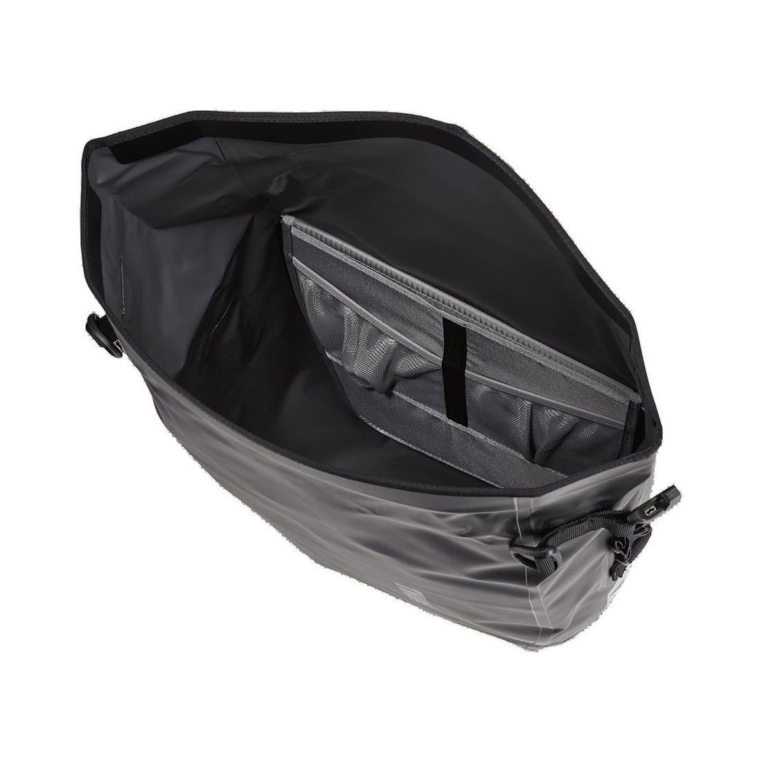 Os sacos para bicicletas são facilmente montados no suporte para bicicletas de 8 a 16 mm e, uma vez instalados, removê-los e colocá-los é ainda mais simples. Laços de fixação e elementos reflexivos proporcionam visibilidade no escuro, enquanto três bolsos interiores mantêm os itens menores organizados. Estes sacos também têm uma classificação certificada IPX4 na escala impermeável IP internacionalmente reconhecida, o que significa que são muito resistentes à água em caso de chuva forte e manterão os seus artigos secos. Quer esteja numa longa viagem de bicicleta ou num passeio curto, com a capacidade de 25 litros pode levar tudo o que precisa consigo.
