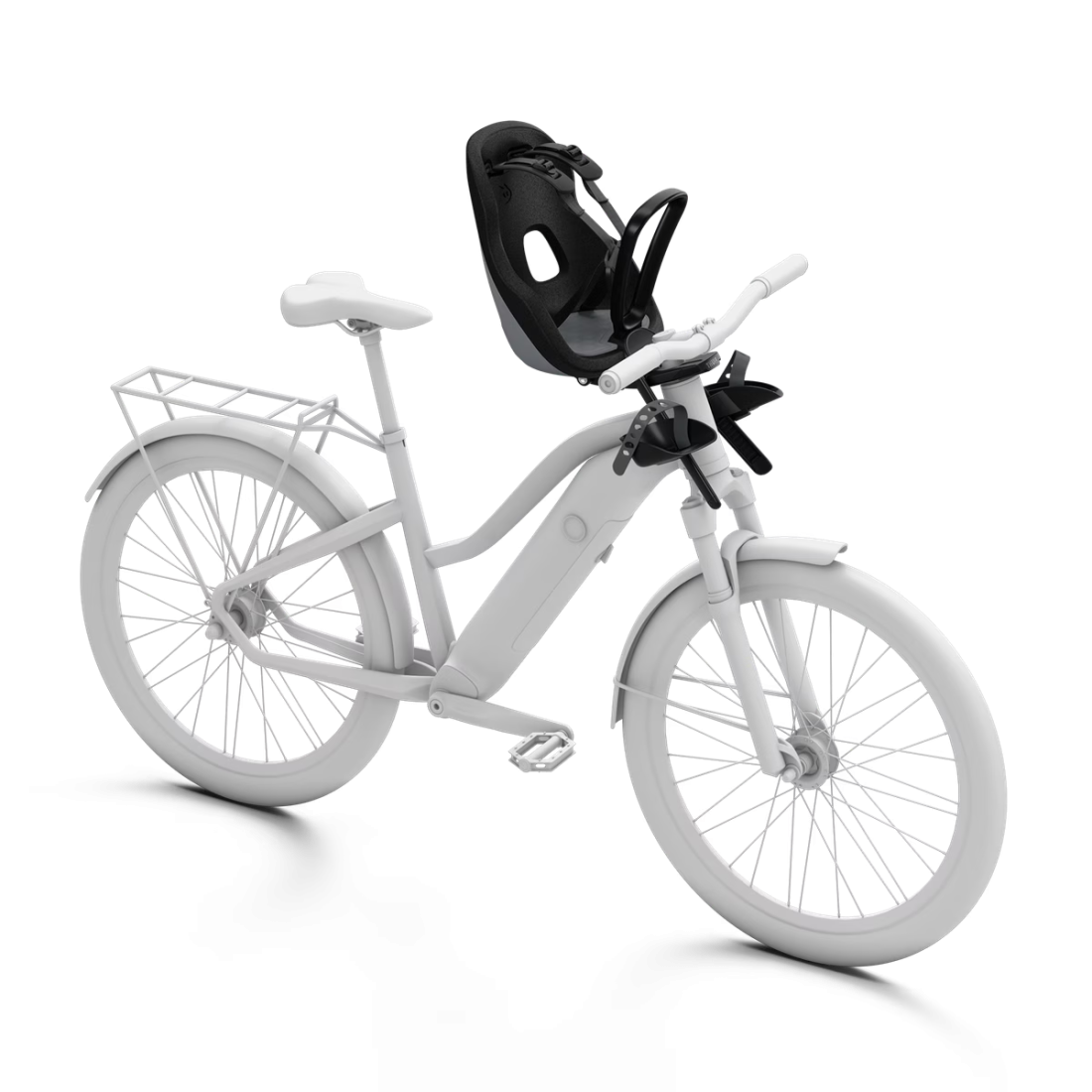 A cadeira de criança para bicicleta para o máximo conforto infantil, com ajuste personalizado e fivela magnética.