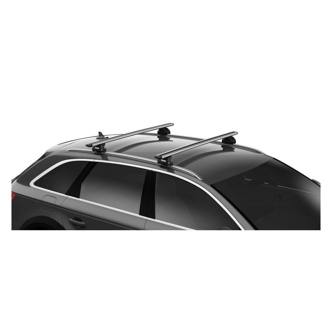 Pack completo que inclui 2 barras Thule WingBar Evo e suportes específicos para Mercedes GLA (2014-2020), Infiniti QX30 (a partir de 2016) com corrimão integrado.