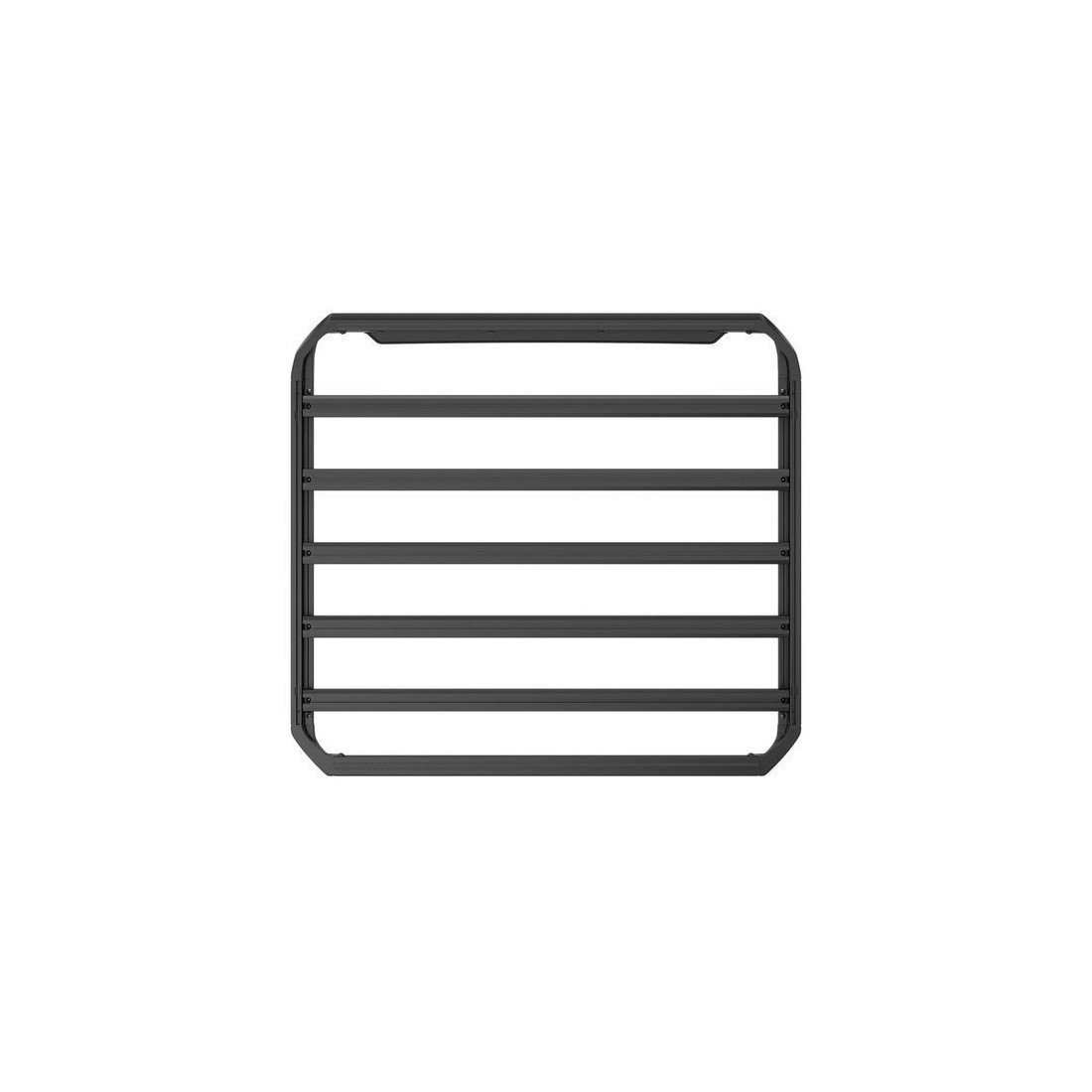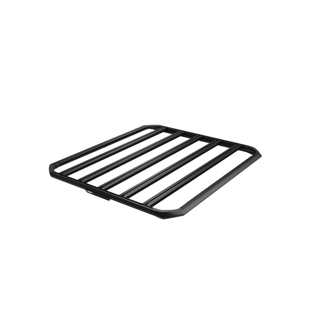 As ranhuras em T integradas em cada barra facilitam a fixação de acessórios como suportes adicionais, tendas de tejadilho, equipamento de campismo, componentes para overlanding e muito mais. Além disso, a plataforma pode transformar-se numa cesta de carga através da incorporação do Thule Caprock Railing Kit.