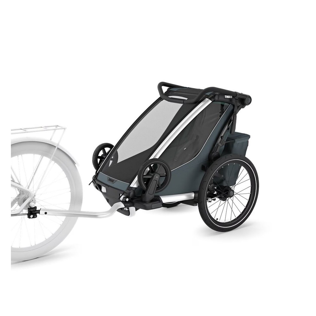 O Thule Chariot Cross 2 transforma-se sem esforço num excelente companheiro de treino através da compra de um kit de corrida ou kit de esqui (vendido separadamente). As transições entre diferentes atividades são mais fáceis e confortáveis do que nunca, tanto para pais como para filhos.