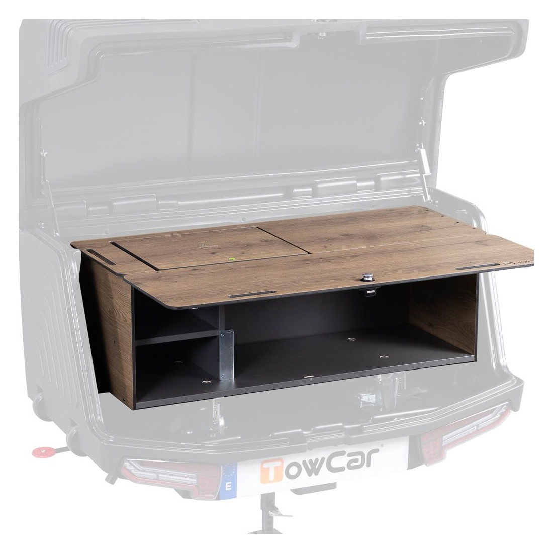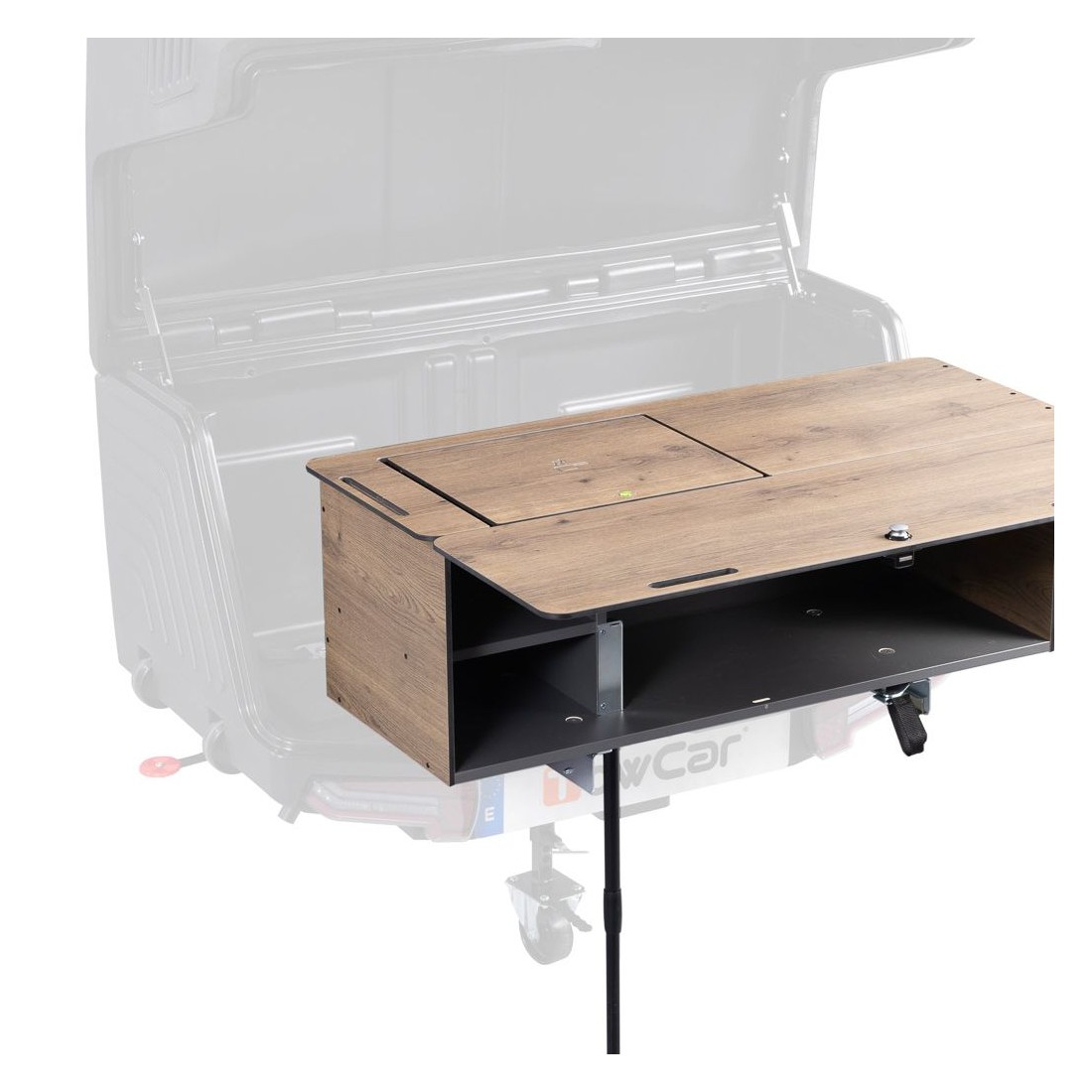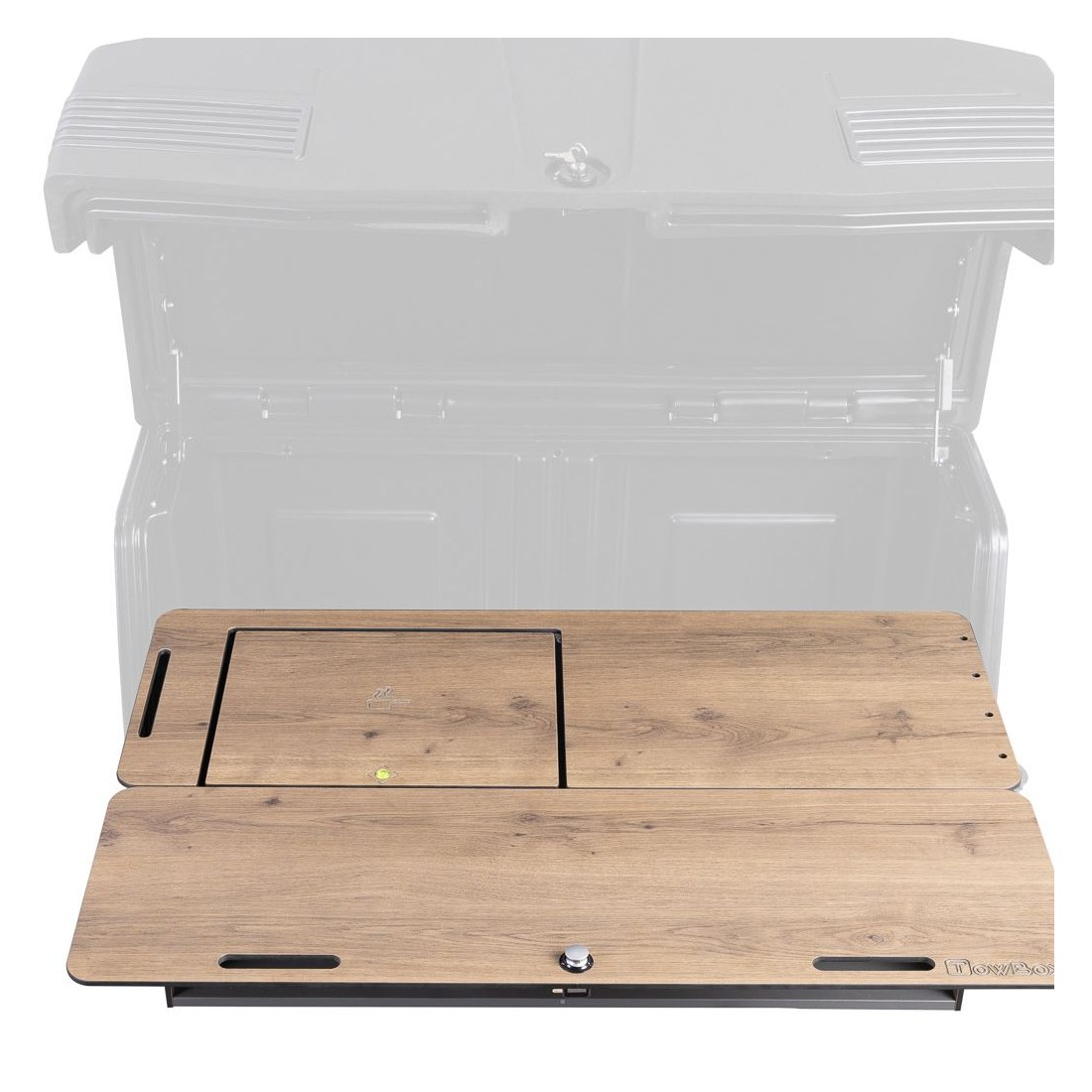 O Camper Life Kit é um móvel concebido para transformar o baú da TowBox Camper numa cozinha portátil, evitando assim que os cheiros dos alimentos se espalhem dentro da carrinha durante a viagem.
