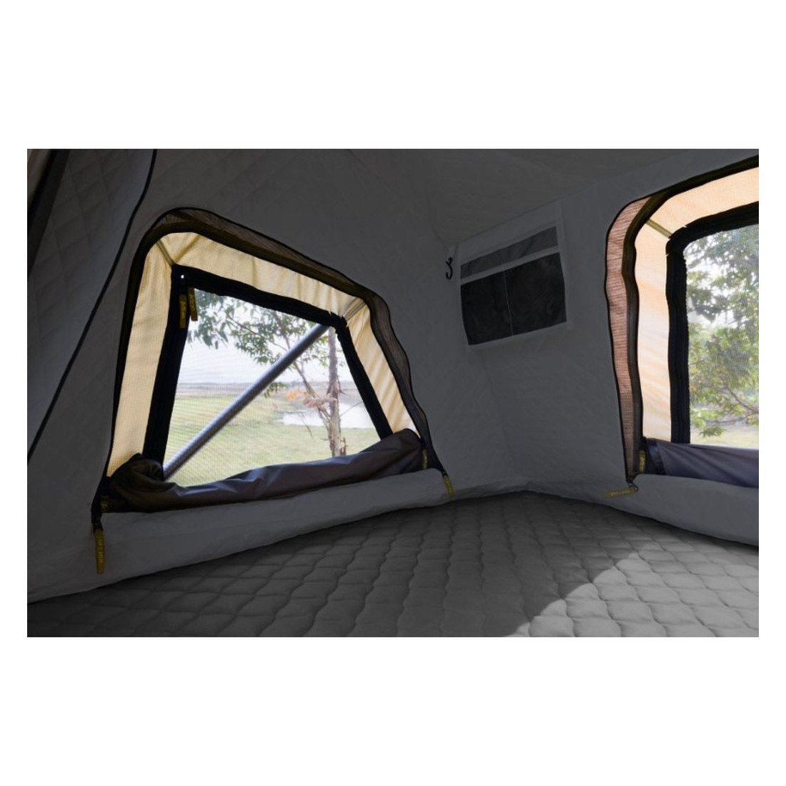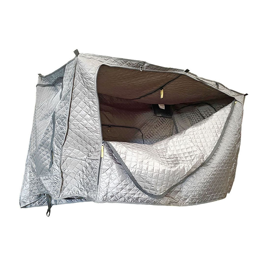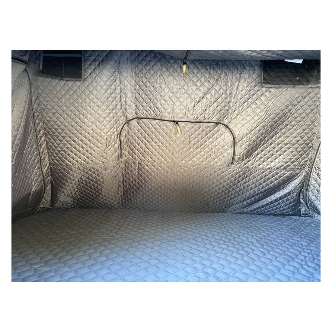 Encaixa-se facilmente no interior da tenda com grampos práticos. A tenda pode ser fechada com o forro térmico instalado.