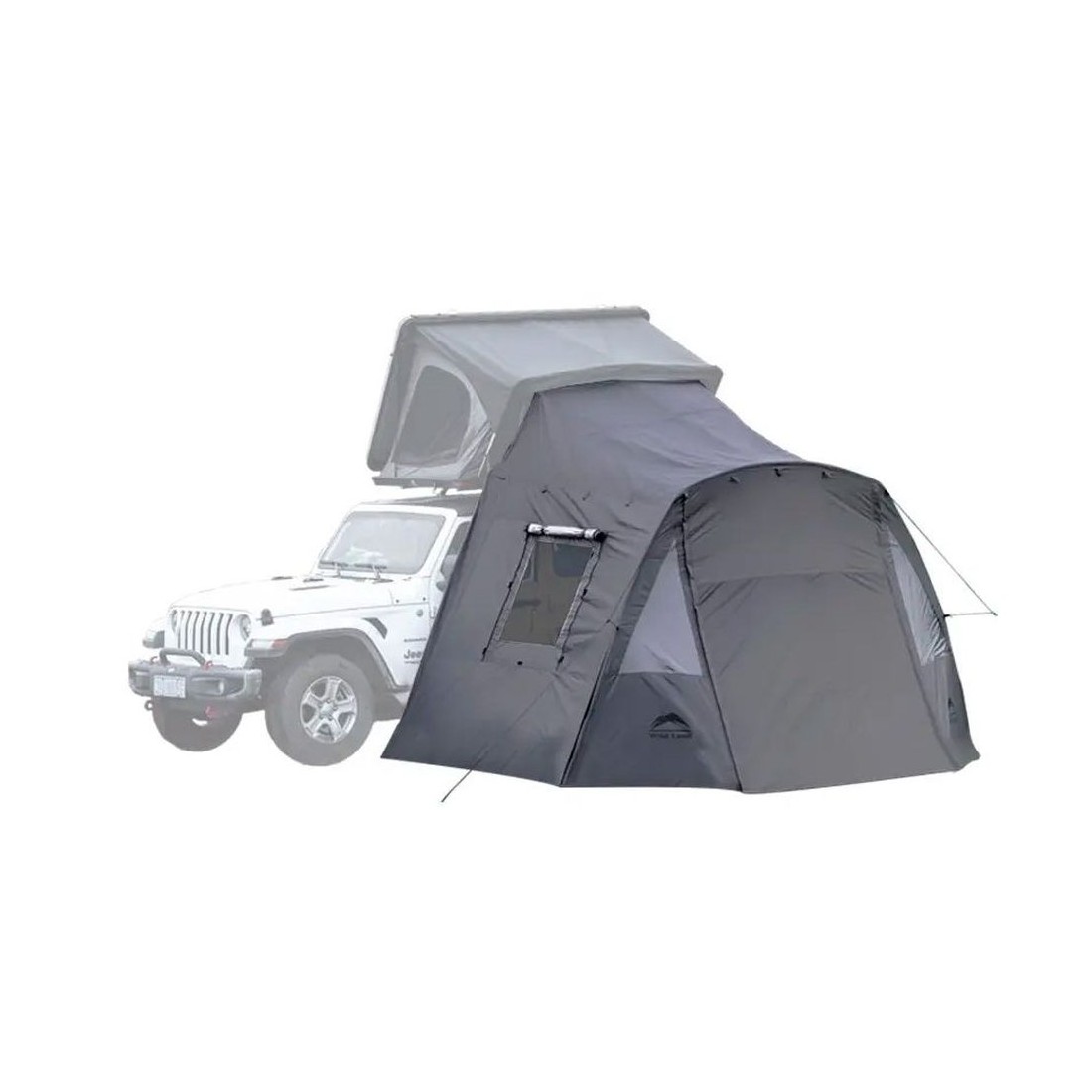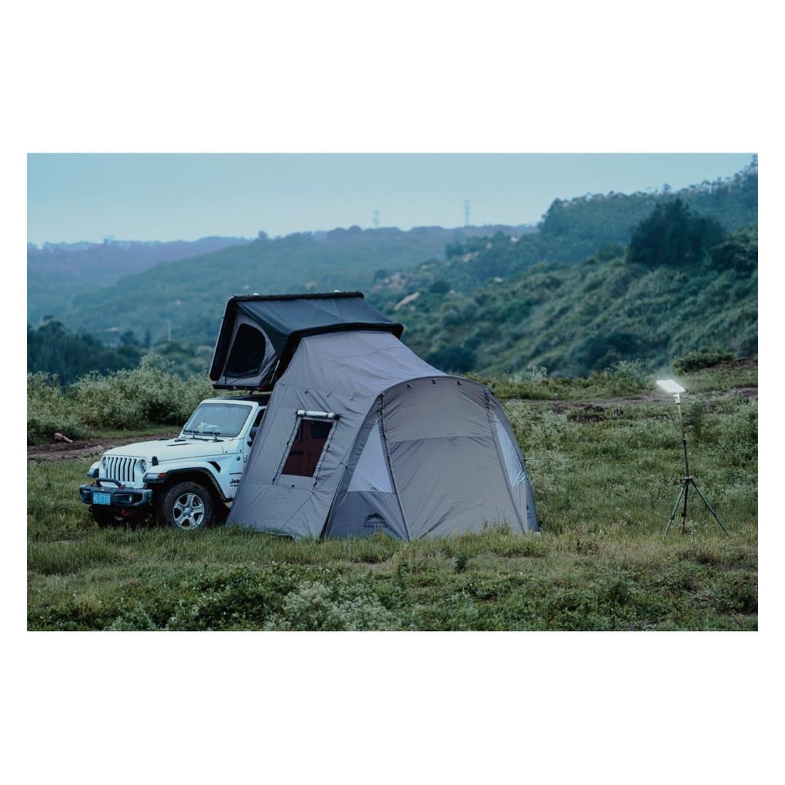 É facilmente fixado com grampos no topo da tenda, permitindo que o espaço à frente do veículo seja fechado de forma completamente privada. Este espaço é perfeito para guardar equipamento de campismo, desfrutar de uma refeição ou simplesmente descansar debaixo de cobertura.