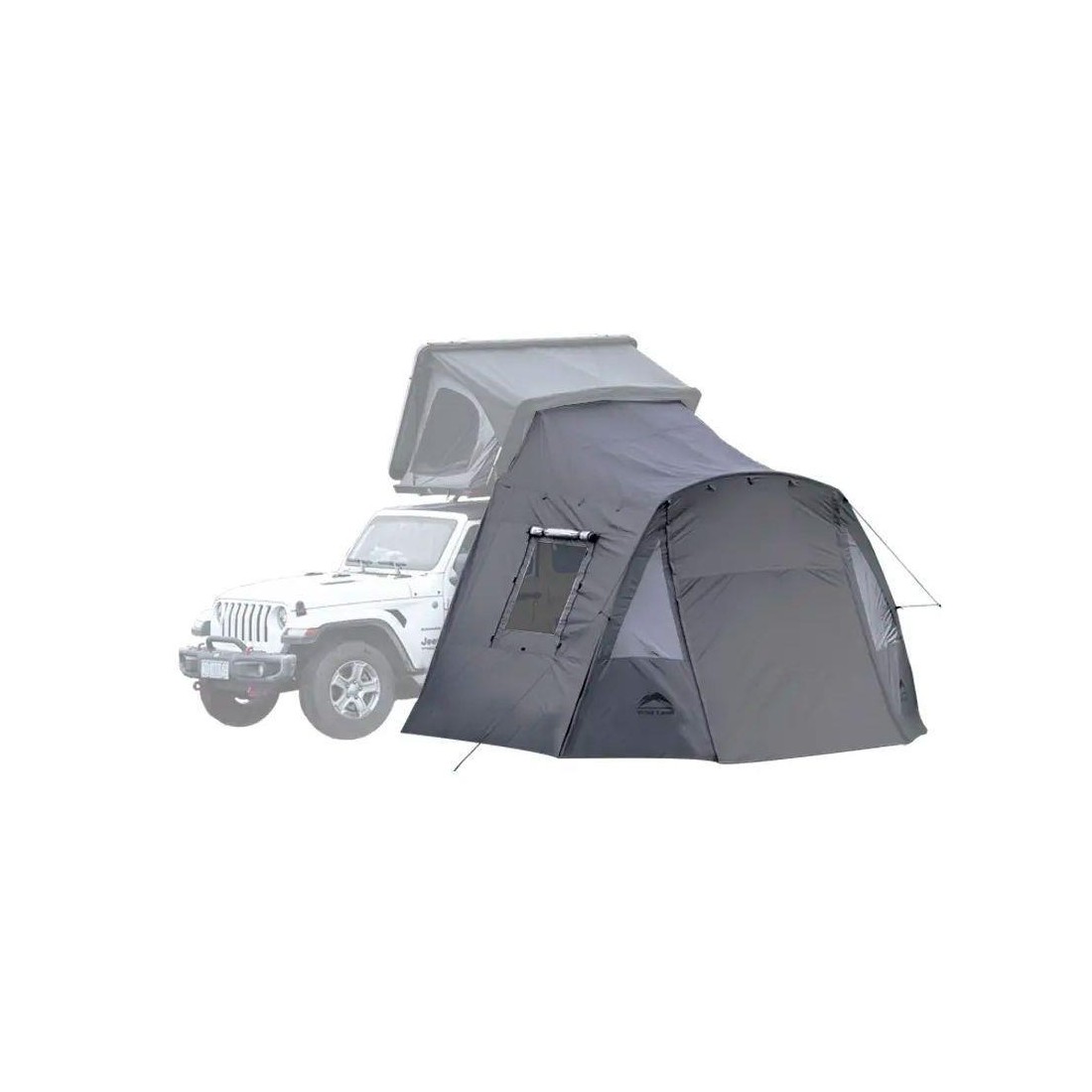 É facilmente fixado com clipes na parte superior da tenda, permitindo que o espaço na frente do veículo seja fechado de forma totalmente privada. Este espaço é perfeito para guardar equipamentos de camping, desfrutar de uma refeição ou apenas relaxar sob cobertura.