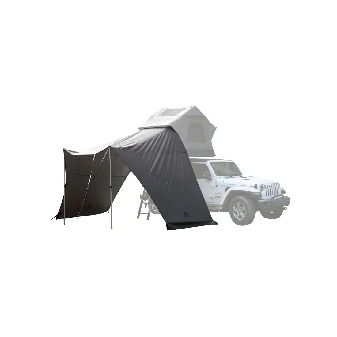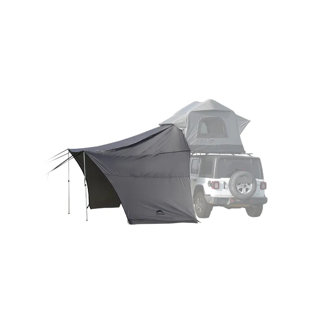 Anexo universal concebido para combinar com qualquer tenda de tejadilho WildLand, ideal para expandir o seu espaço de campismo de forma confortável e funcional. O seu design multifuncional permite adaptá-lo a diferentes posições, dependendo das condições: proteção contra o sol ou a chuva, ou para maior privacidade.