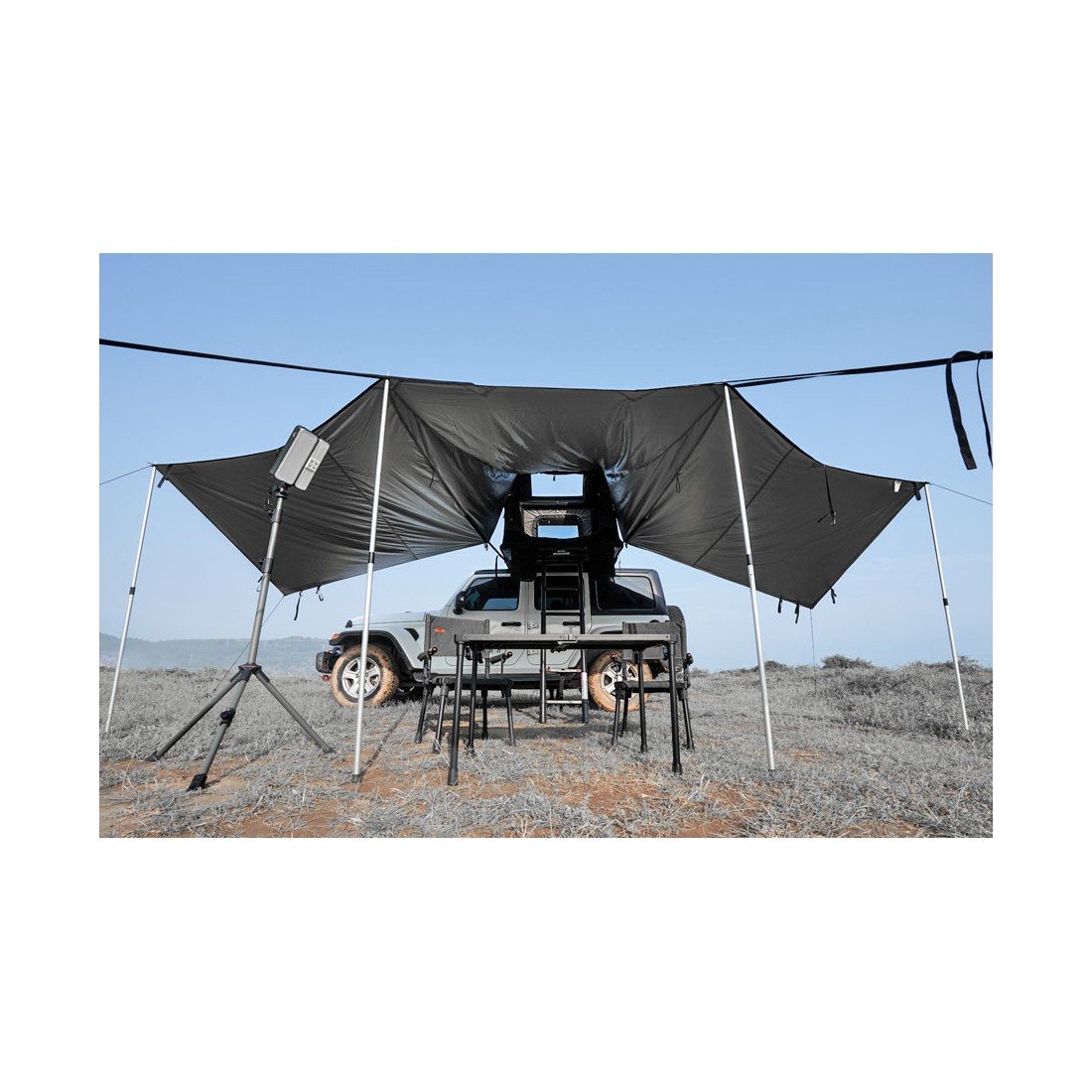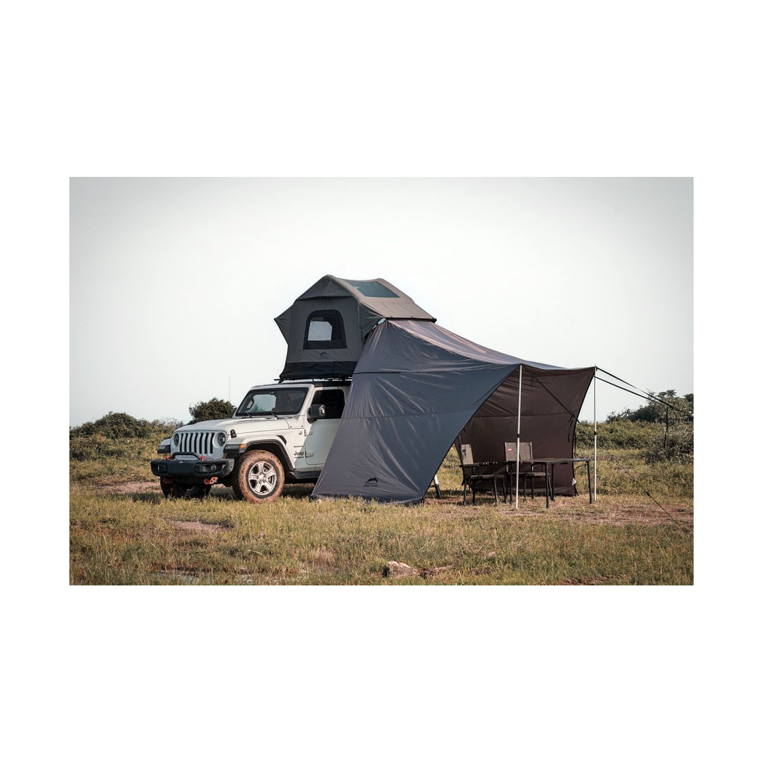 Também pode ser ligado aos WildLand Shelter Hubs, criando uma área coberta maior, perfeita para guardar equipamento, fazer refeições ou relaxar. Além disso, é compatível com veículos sem tenda de tejadilho, uma vez que pode ser fixado às barras de tejadilho e utilizado como um toldo independente.