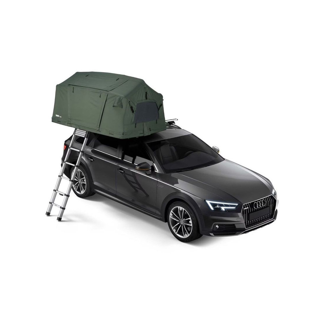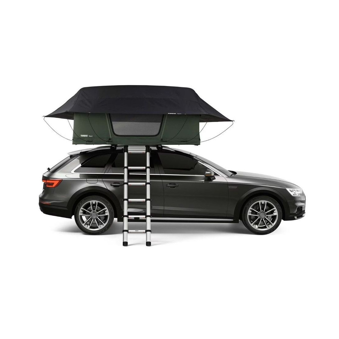 Além de se apoiar nas barras do tejadilho, tem ainda um terceiro suporte na escada (incluído), o que permite aumentar a capacidade de peso.