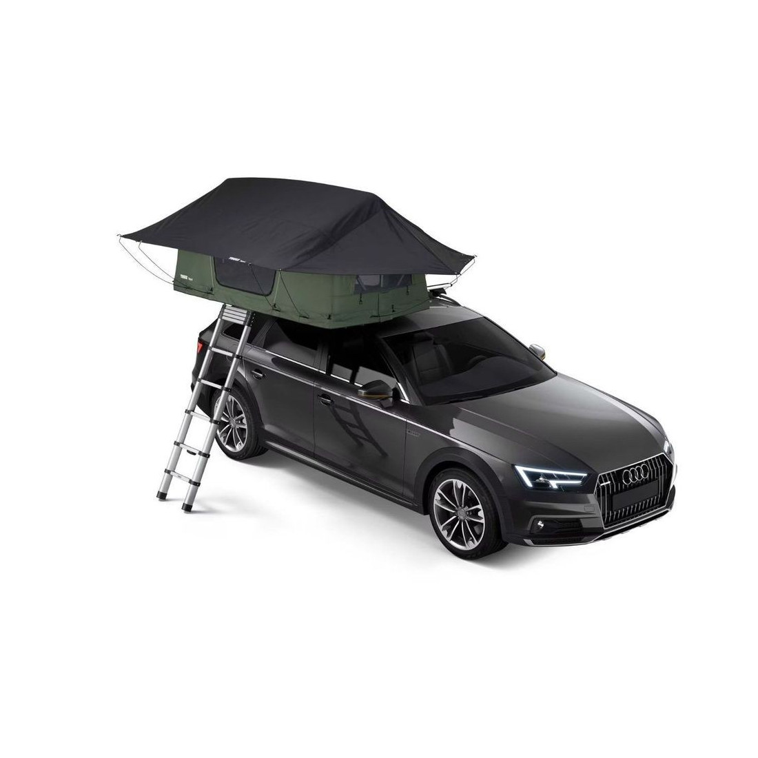 Tenda de tejadilho para viatura com capacidade para 2 pessoas com instalação em bagageiros. Possibilidade de transportar também um suporte para bicicletas.