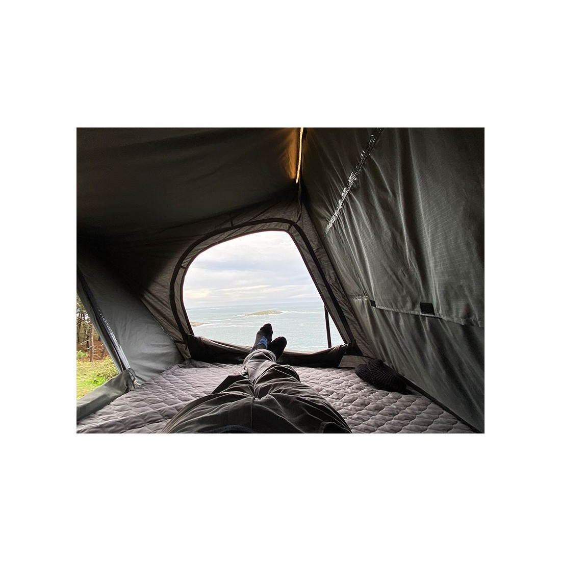 A tenda de teto Brétema é um modelo universal, compatível com carros, furgões camper, 4x4 e veículos off-road. O seu nome, de origem galega, significa “névoa” ou “bruma”, evocando a tranquilidade e a magia da natureza que caracteriza esta região. A nossa tenda de campismo para o carro permite desfrutar de momentos de calma e conforto, combinando a segurança do seu design com detalhes pensados para oferecer uma experiência de acampamento completa.