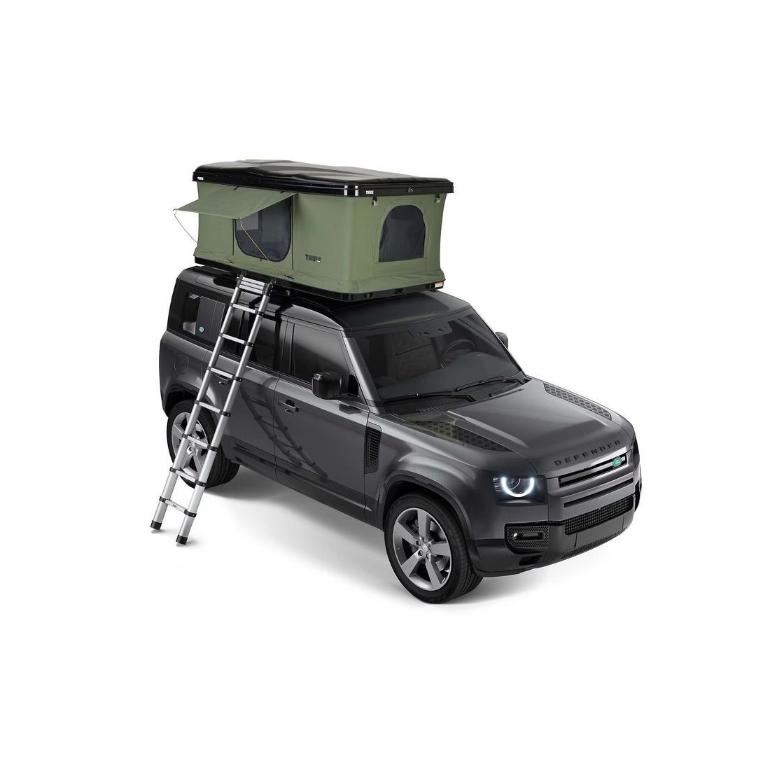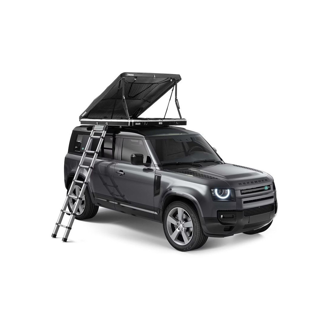 Inclui escada telescópica que pode ser fixada em ambos os lados para facilitar o acesso à tenda.