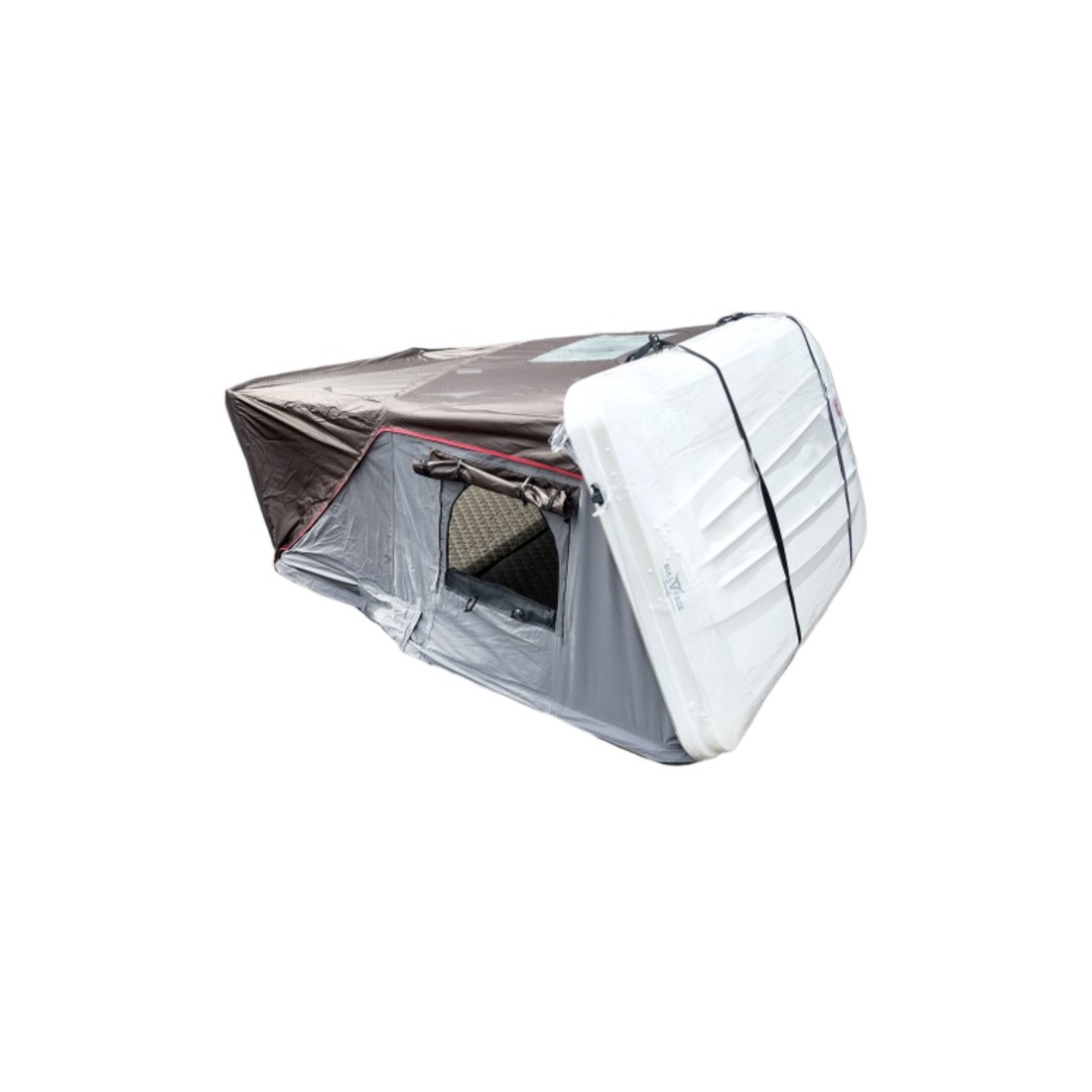 Rabat Bullface tenda de tejadilho com abertura em forma de cunha e capacidade para 2 adultos e uma criança. É instalado em barras de telhado