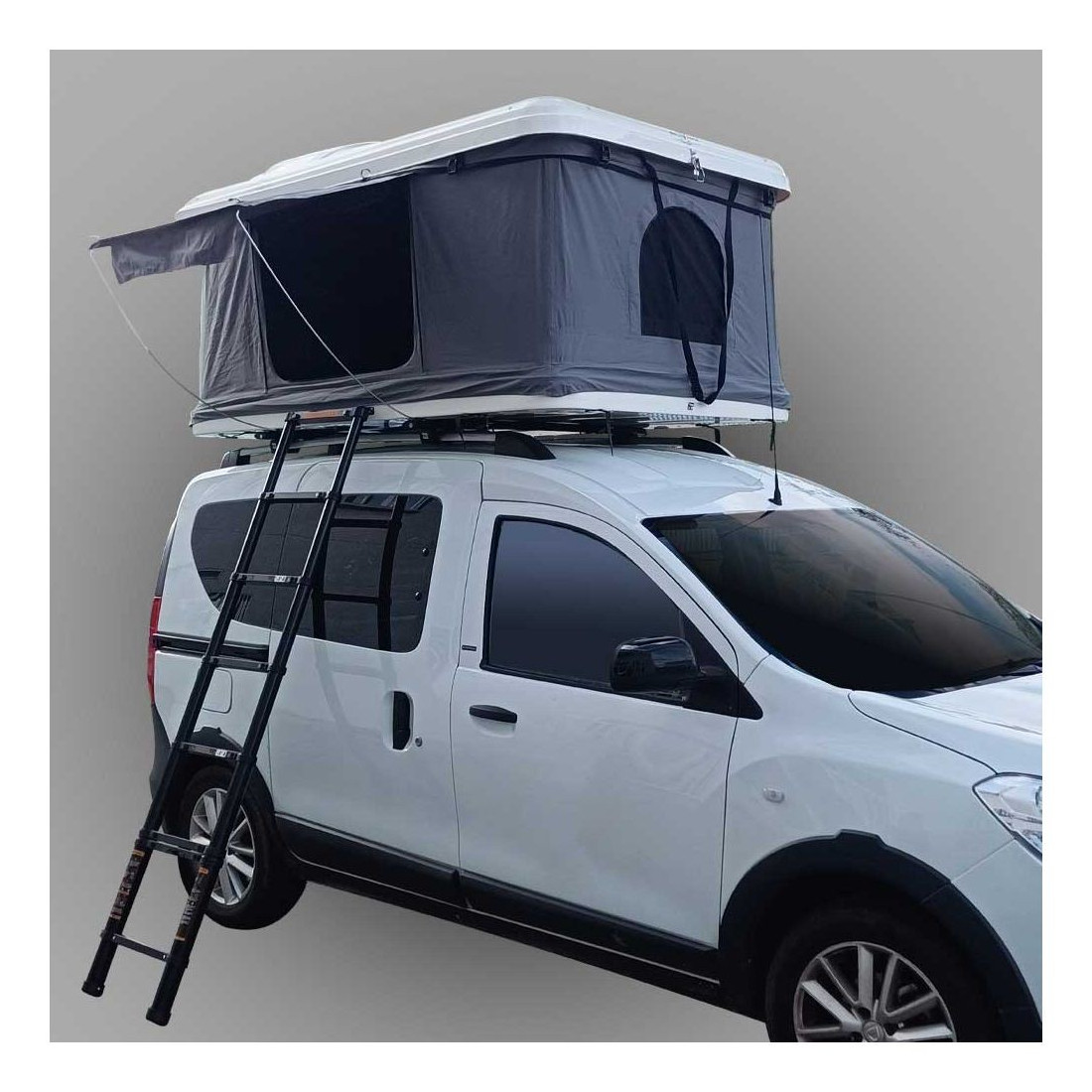 O acesso à tenda a partir do solo é muito fácil graças à escada telescópica incorporada. Esta escada pode ser estendida até 2,60 metros e suportes um peso máximo de 150KG.