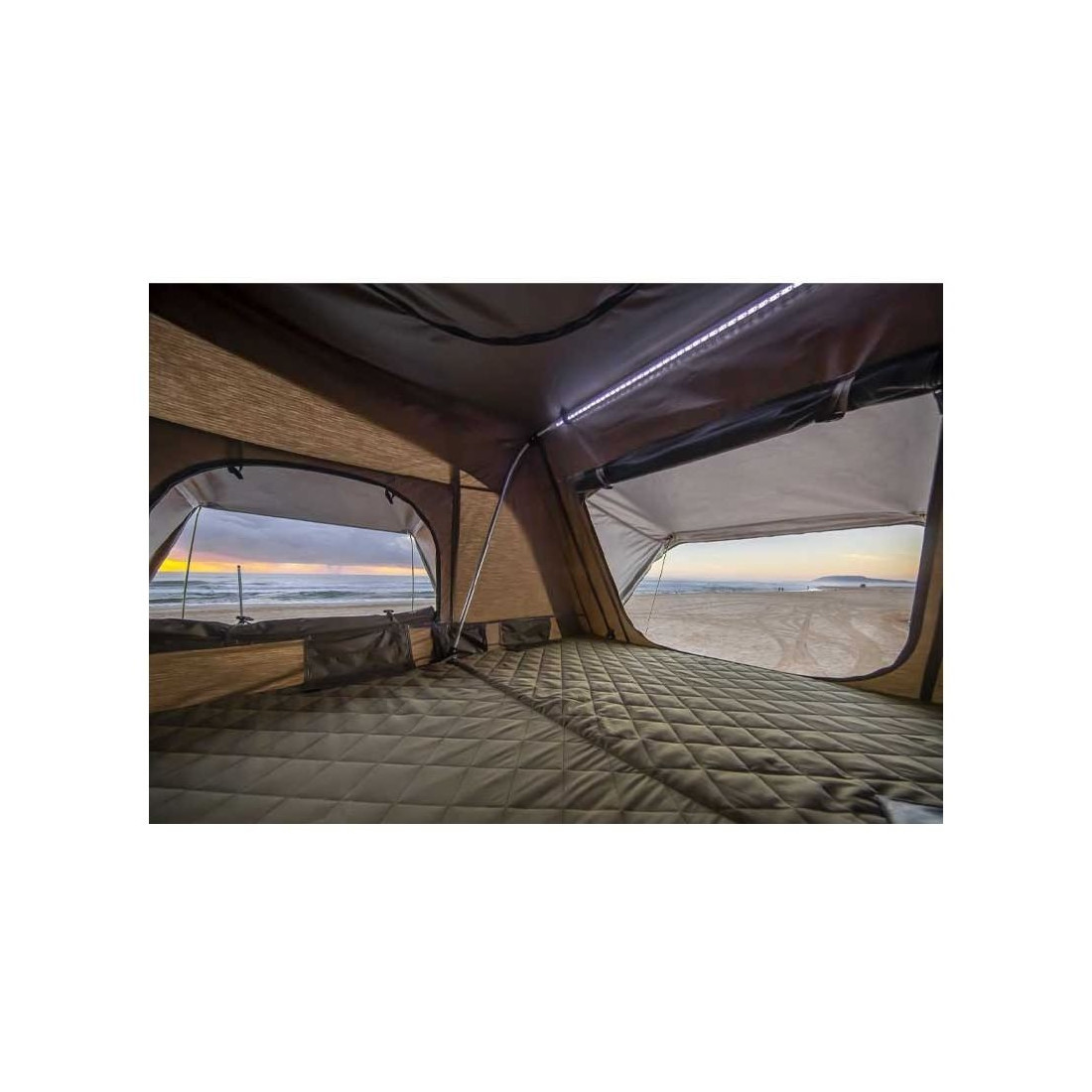 - Você pode manter todas as roupas de cama dentro da barraca quando dobradas durante a viagem, liberando espaço dentro do veículo.