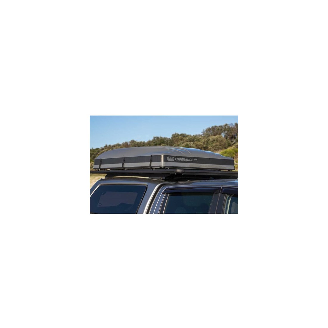 Tenda de tejadilho para carro ou 4x4 ARB Esperance com estrutura resistente, abertura em forma de cunha e capacidade para 2 pessoas. É instalado em barras de telhado.