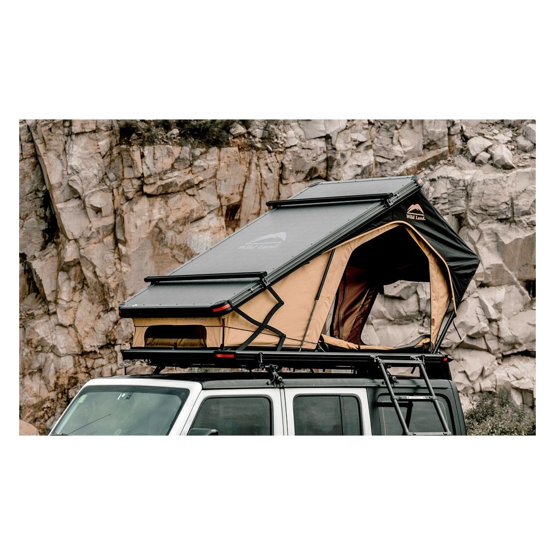 A tenda de teto camper WildLand Fisterra V2 é a opção ideal para quem deseja explorar lugares remotos sem abrir mão do conforto e de um descanso de qualidade. Esta nova versão combina design e alto desempenho, incorporando melhorias significativas que aumentam o espaço interior e a funcionalidade do abrigo. O seu nome continua refletindo a essência de chegar “até ao fim da terra” para desfrutar plenamente da experiência.