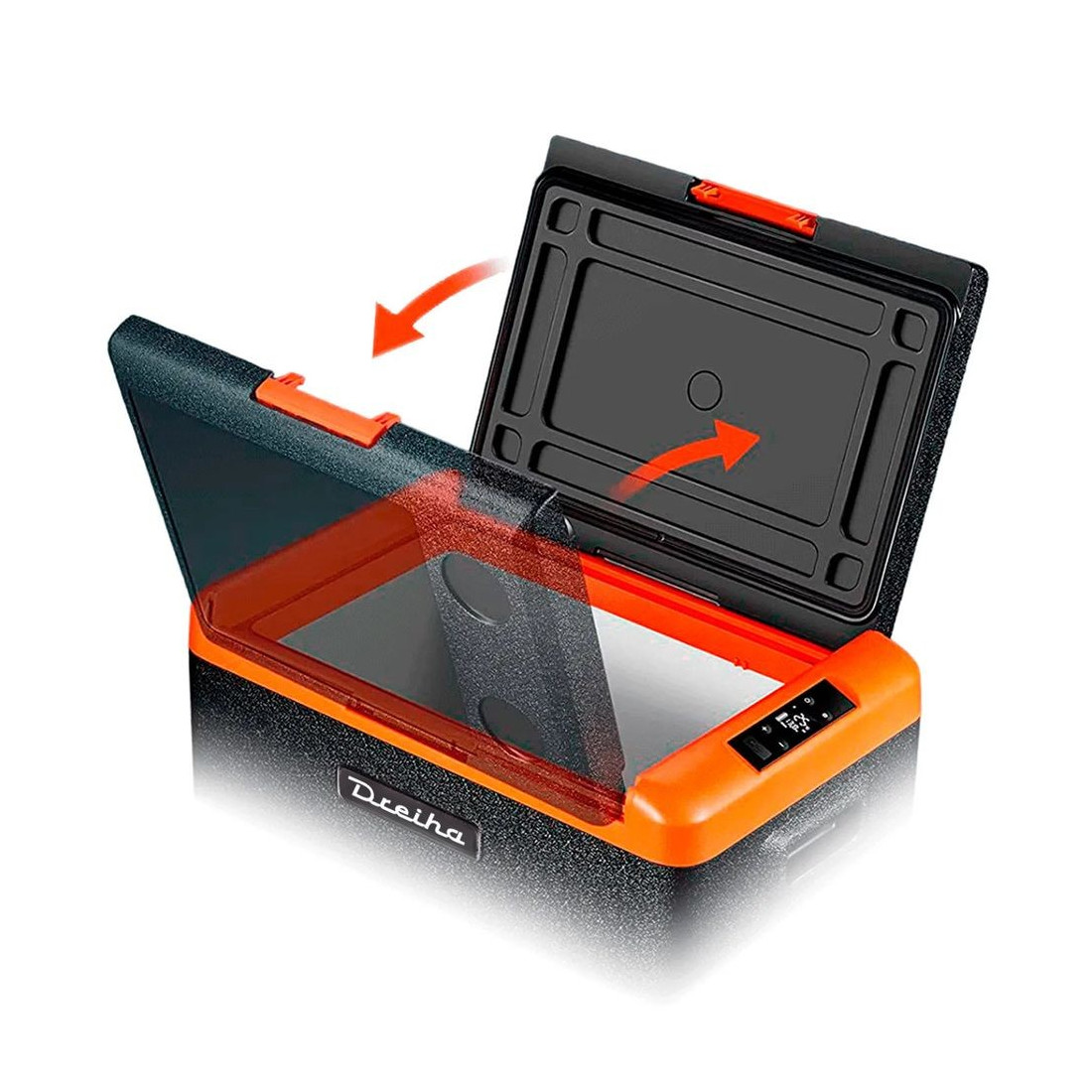 Compatível com qualquer Smartphone ligando-o à Dreiha APP CBX via Bluetooth. Controle a temperatura, ajuste o nível de proteção da bateria escolhendo o consumo, ligue ou desligue o frigorífico e monitorize o nível da bateria. Inclui ligação à porta USB para carregar dispositivos.