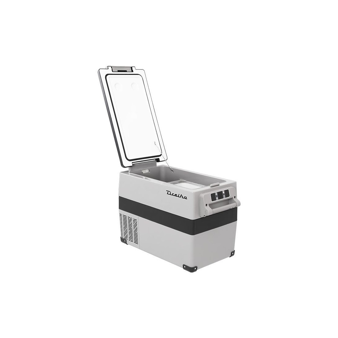 Compatível com qualquer Smartphone ligando-o à APP Dreiha CBX via Bluetooth. Controle a temperatura, ajuste o nível de proteção da bateria escolhendo o consumo, ligue ou desligue o frigorífico e monitorize o nível da bateria. Inclui ligação à porta USB para carregar dispositivos.