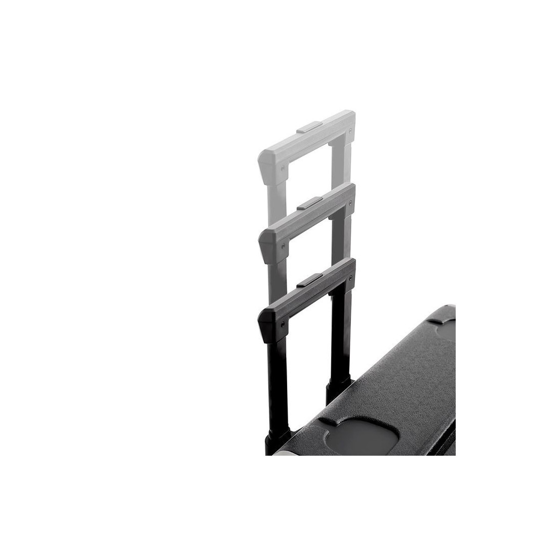 Transporte confortável graças à sua pega telescópicacom três níveis, pegas laterais rebatíveis e rodas altamente resistentes .