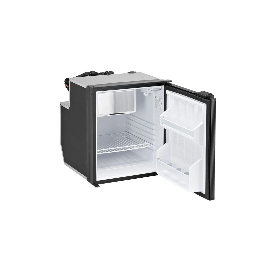 Especificamente concebido para caravanas, autocaravanas, barcos e autocaravanas e carrinhas industriais, este frigorífico destaca-se pelo seu design eficiente e ampla capacidade de armazenamento. A sua disposição interior, equipada com bandejas e um compartimento congelador, permite-lhe organizar alimentos e bebidas da melhor forma. Além disso, a porta possui compartimentos especificamente projetados para garrafas e latas de meio litro, oferecendo maior comodidade e fácil acesso aos produtos.