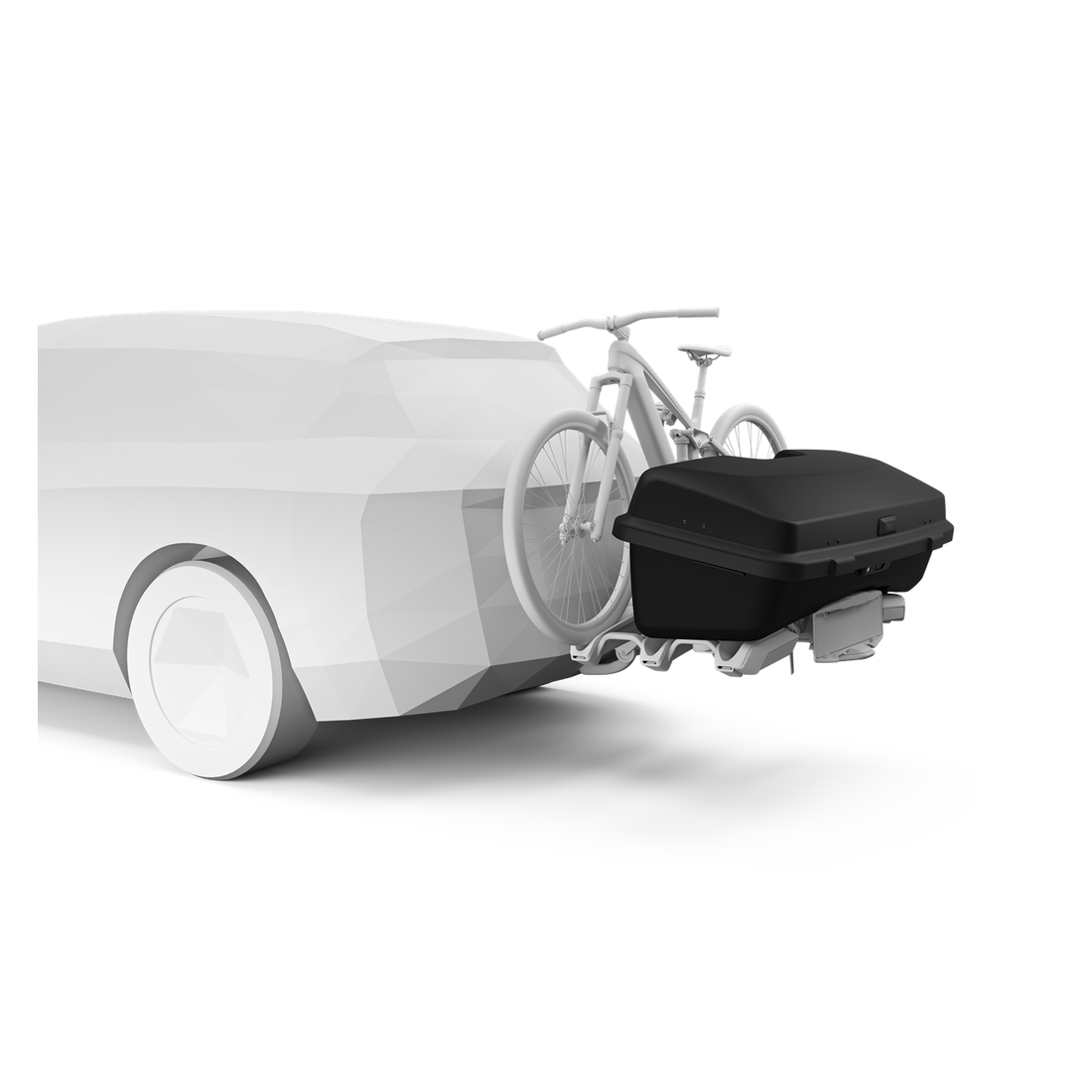 Graças à opção basculante do Porta-bicicletas, é possível inclinar a caixa para poder acessar o porta-malas com o sistema instalado.