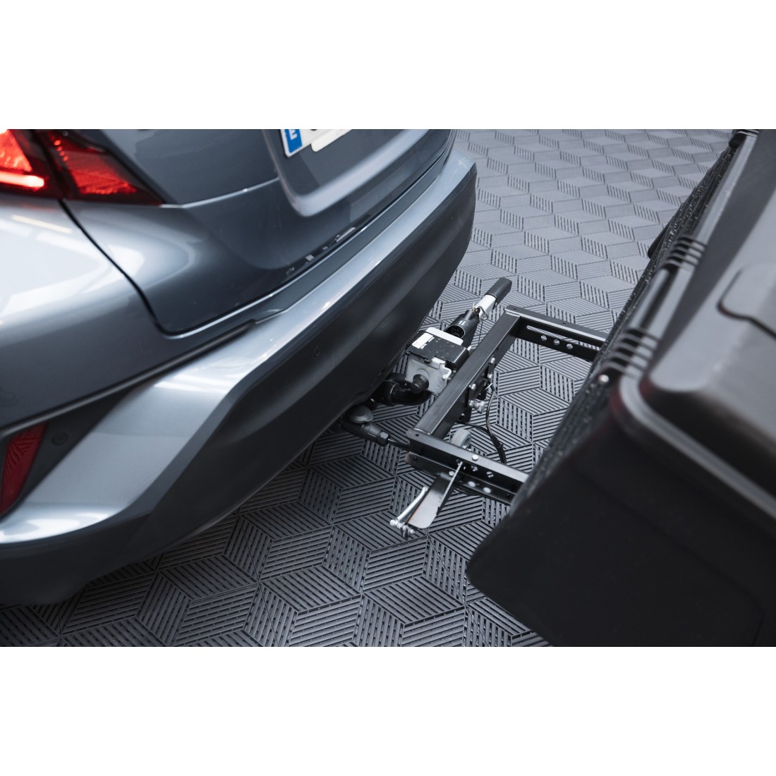 É instalado diretamente na bola de reboque sem a necessidade de ferramentas e pode ser feito por uma única pessoa.