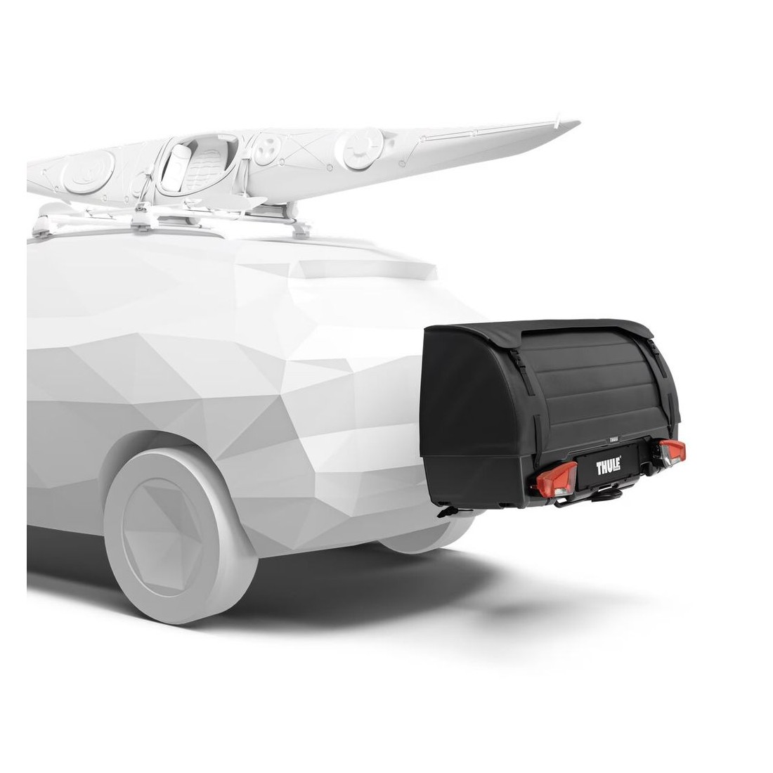 Capô traseiro ou suporte de esferas de reboque projetado para expandir a capacidade de carga do seu veículo com 300 litros adicionais, sem comprometer o acesso ao porta-malas.
