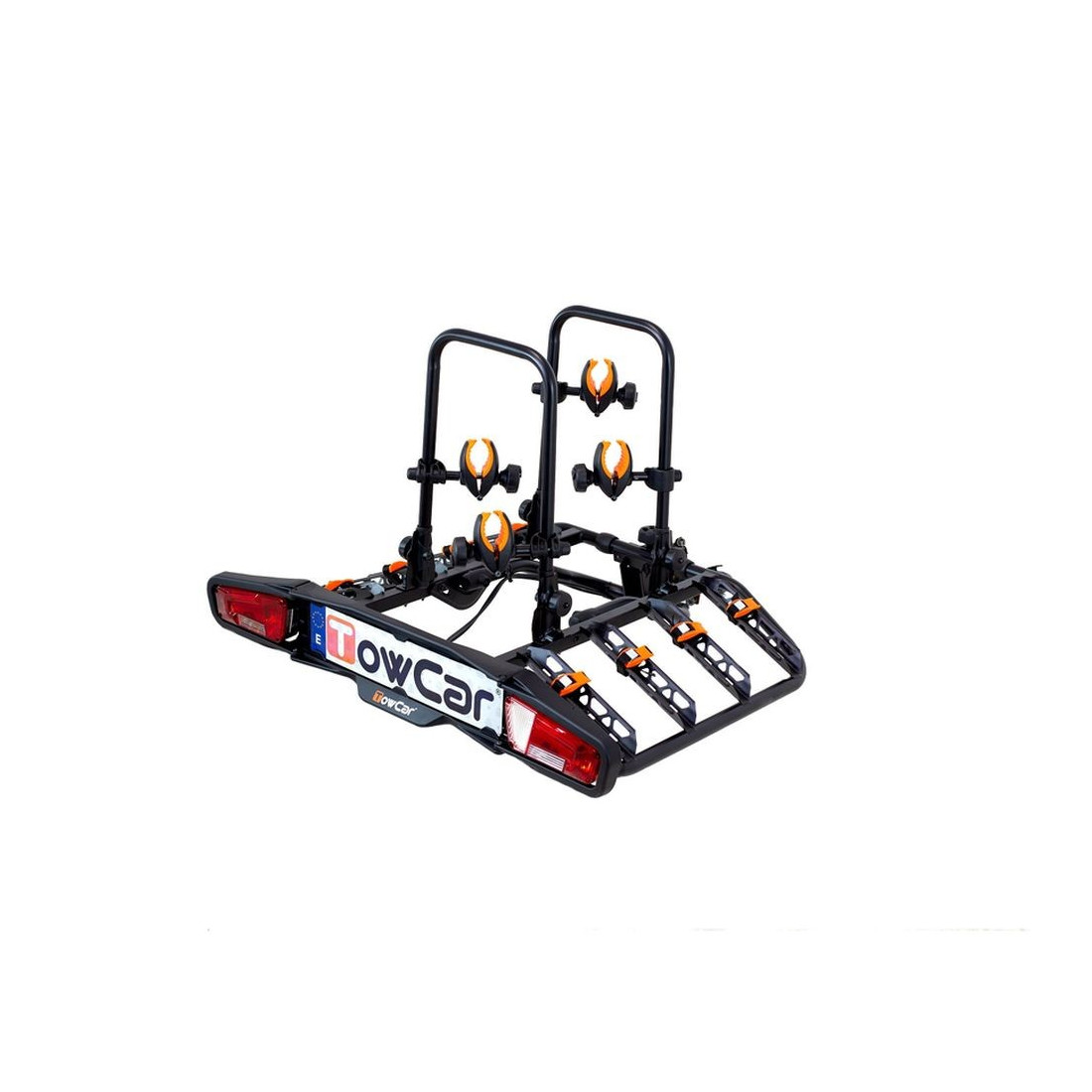 Suporte de bicicleta de plataforma com o qual transportar confortavelmente quatro bicicletas na bola de reboque.