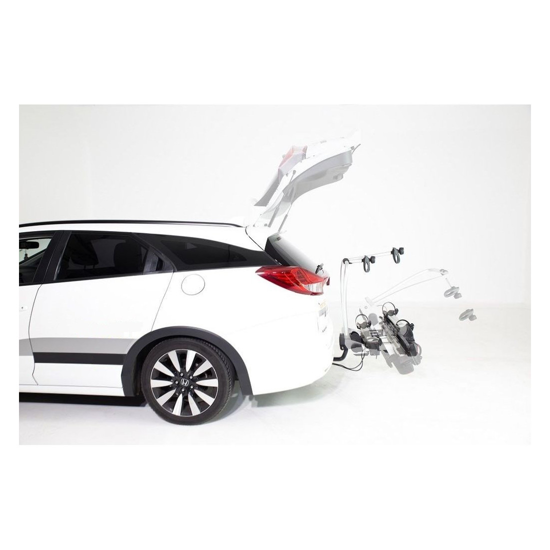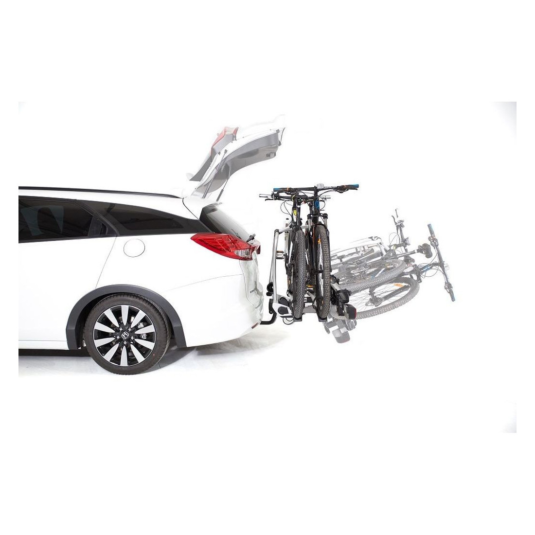 O seu sistema dobrável permite-nos aceder ao porta-malas mesmo com as bicicletas instaladas.