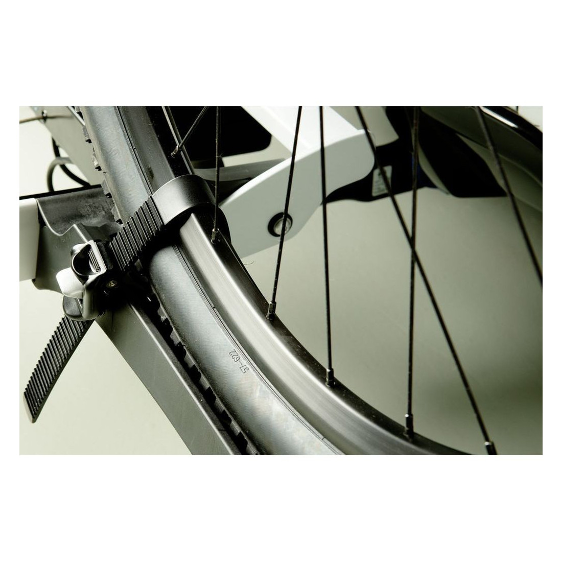 Tem faixas adaptáveis em comprimento que tornam possível transportar bicicletas maiores.