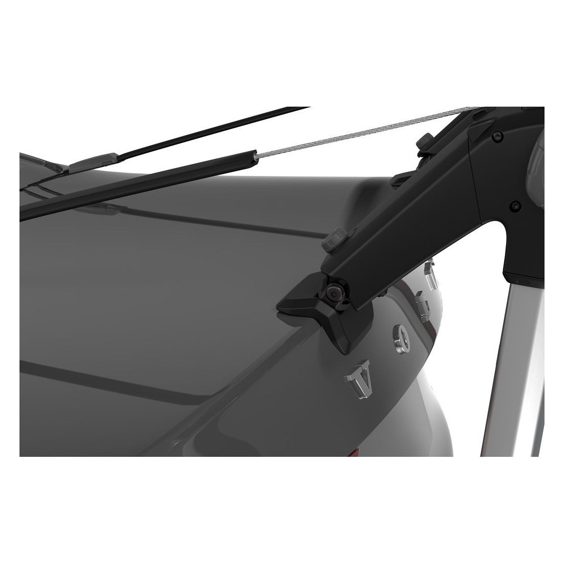 Suporte firme e proteção do veículo com conexão de gancho duplo e almofadas de proteção de borracha.