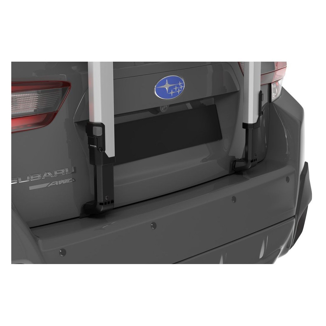 O porta-malas do veículo pode ser aberto sem bicicletas montadas.