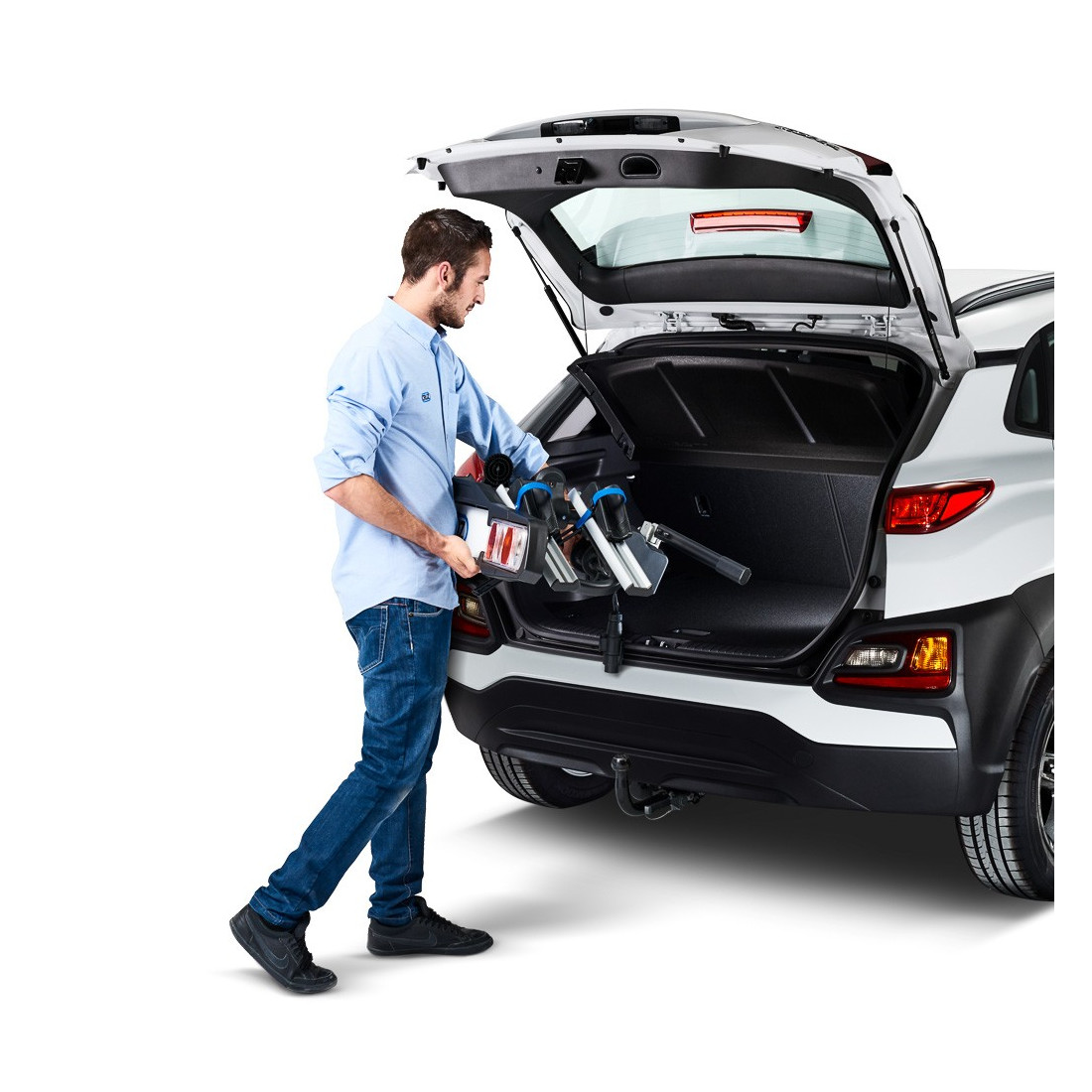 Permite transportar confortavelmente até 4 bicicletas, graças ao seu design atrativo com carris de alumínio, detalhes estéticos em plástico e ciclistas modernos. O seu sistema de dobragem facilita o acesso à bagageira mesmo com bicicletas carregadas, evitando desmontagens desnecessárias.