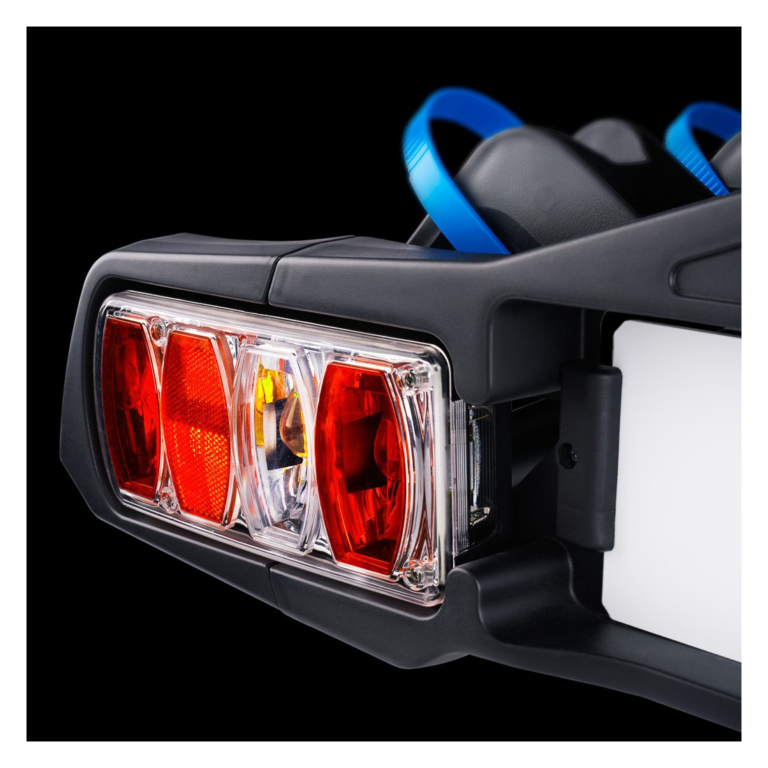 Inclui também uma placa de luz com suporte para matrícula e adaptador de 7/13 polos (12V), garantindo uma sinalização ótima na estrada.