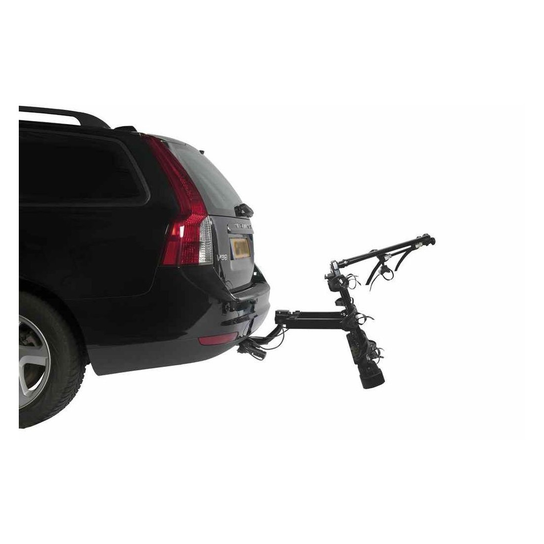 A posição abatível do porta-bicicletas facilita o acesso à bagageira sem necessidade de desmontar as bicicletas, otimizando a comodidade do utilizador. As bicicletas apoiam-se em canaletas largas e estáveis, enquanto as abraçadeiras do quadro seguram de forma flexível cada bicicleta, garantindo um transporte seguro e estável.