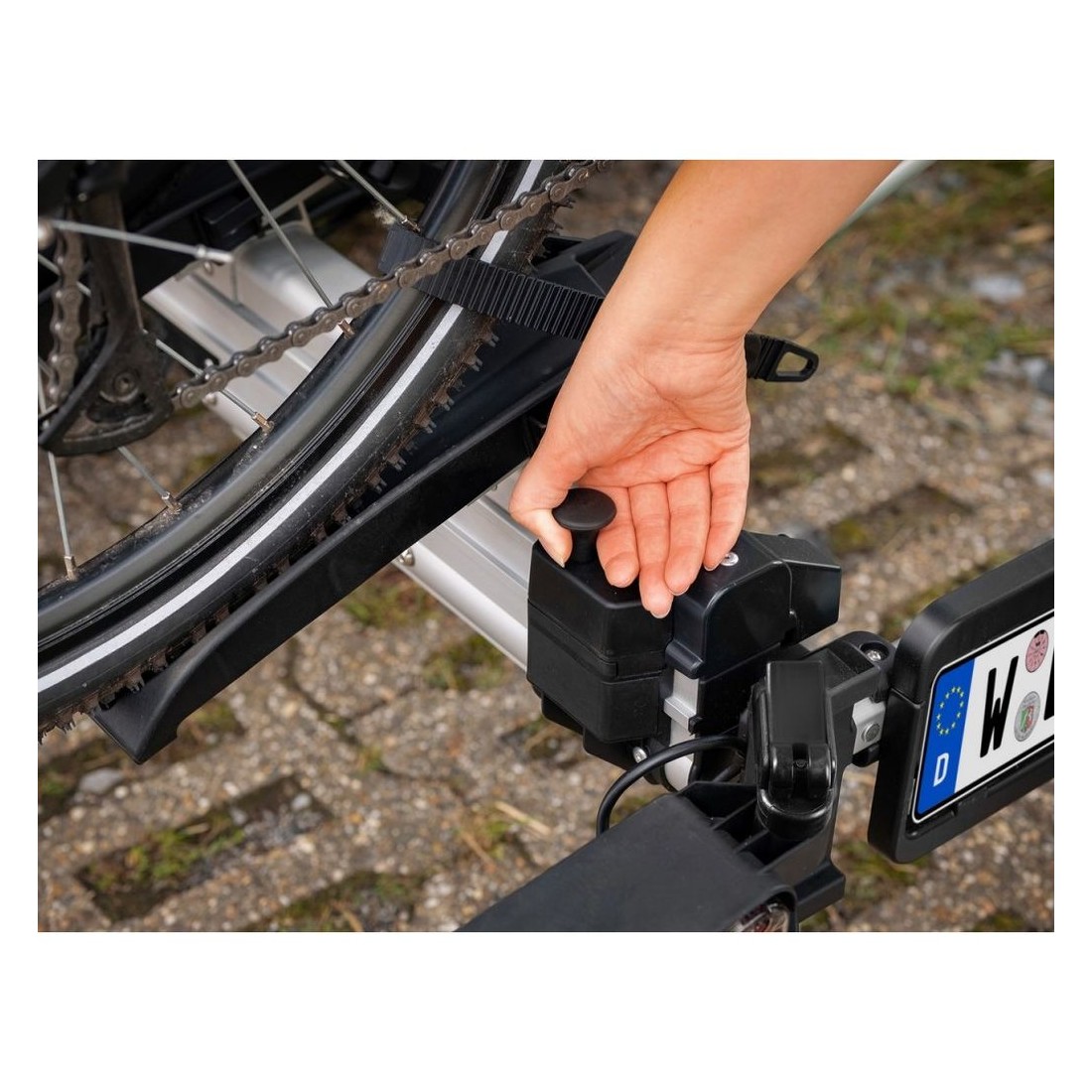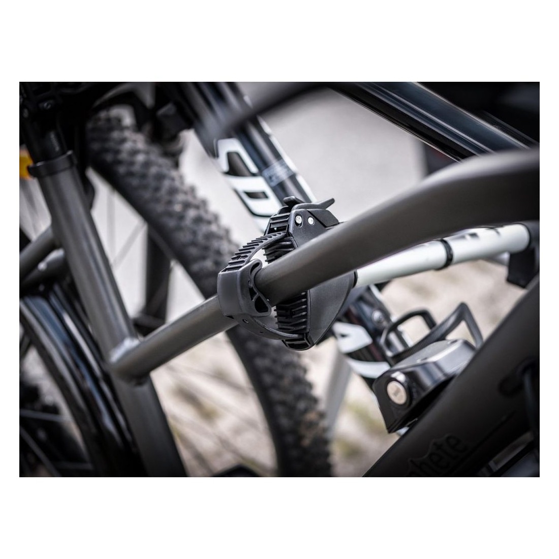 Para a montagem das bicicletas, os braços removíveis incluem correias laminadas em aço com rotação de 360º e fecho individual, garantindo compatibilidade com todo o tipo de quadros, incluindo bicicletas elétricas (e-Bikes). Suporta um peso máximo de 60 kg, com largura máxima de roda de 3,25".