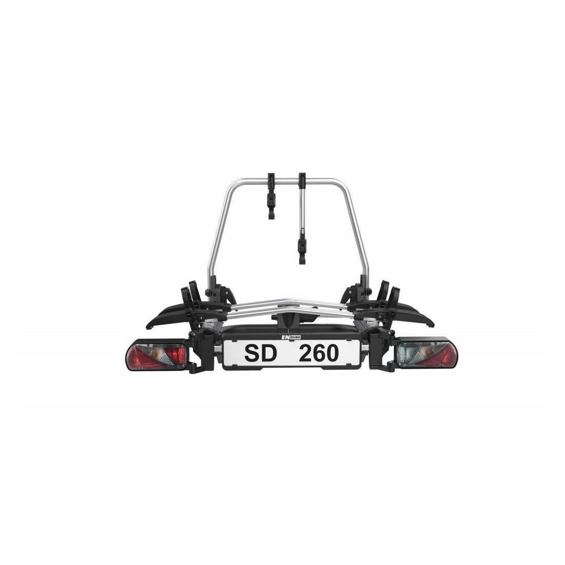 O porta-bicicletas Enduro SD260 foi especialmente desenvolvido para carrinhas camper com duas portas traseiras (largura máxima por porta de 85 cm). O seu design foi concebido para oferecer comodidade e funcionalidade ao mesmo tempo.
