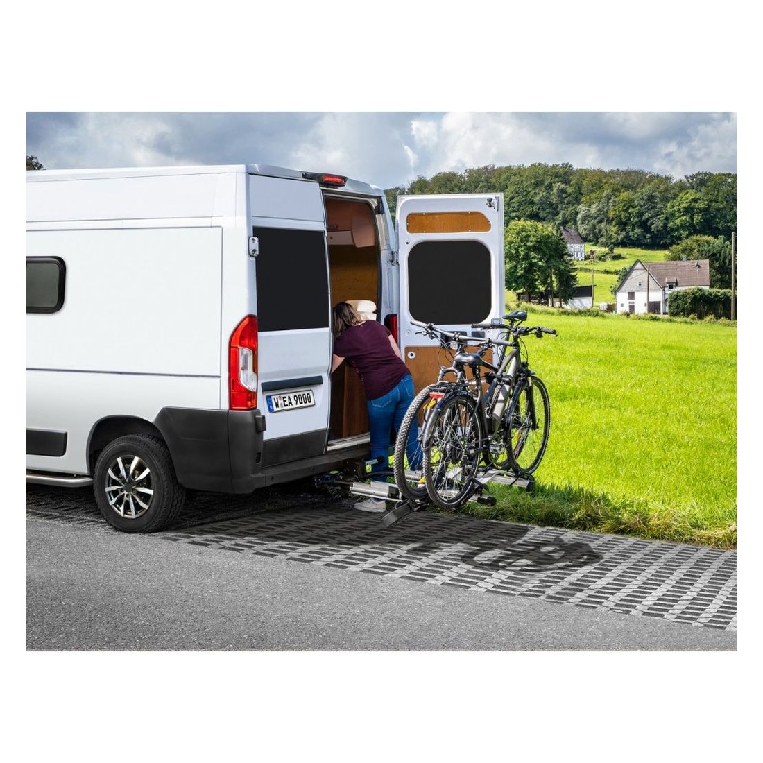 - Plataforma deslizante de 70 cm, ideal para carrinhas camper com duas portas traseiras (largura máxima 85 cm).