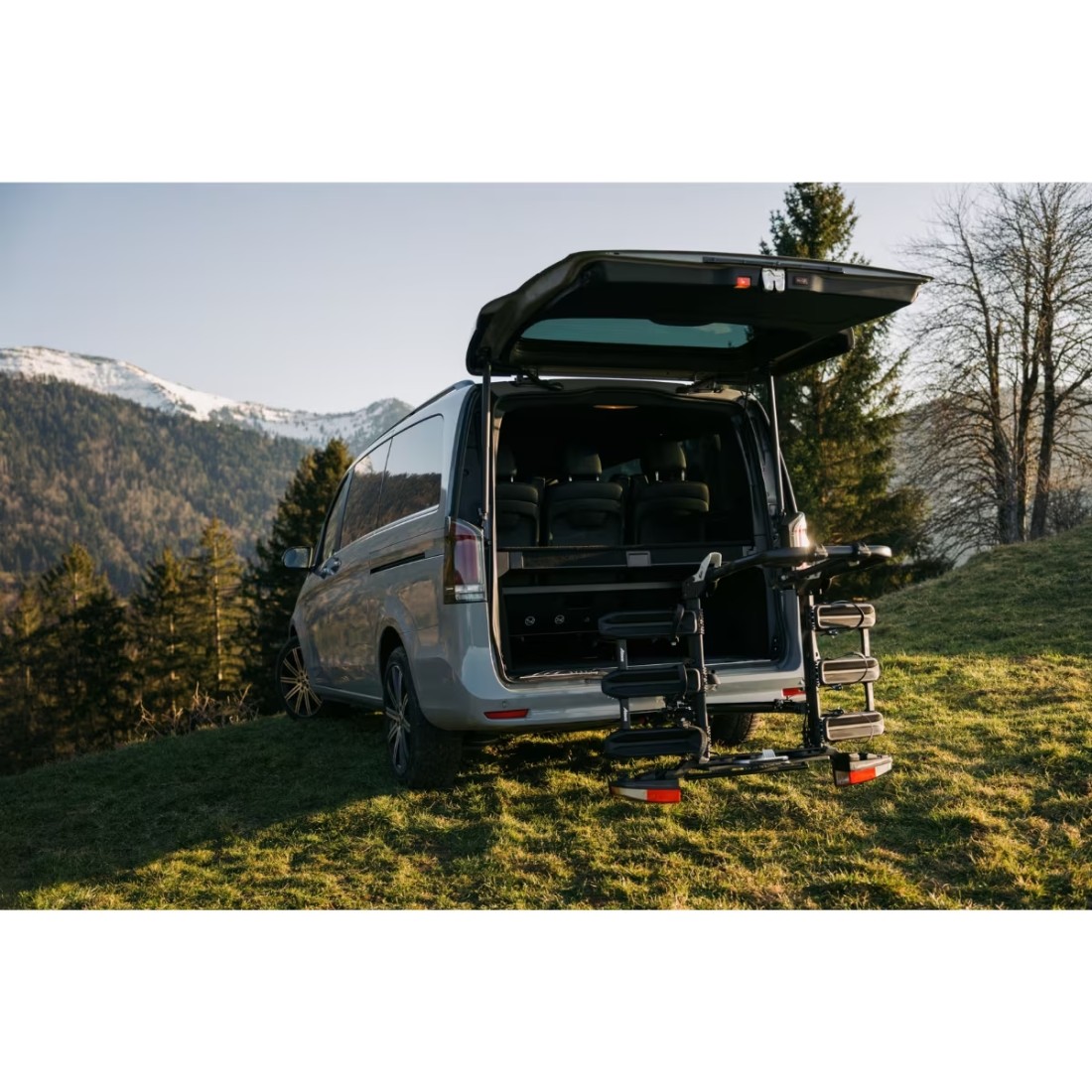 Inclui um sistema de antirroubo que protege tanto bicicletas como porta-bicicletas. Além disso, está equipado com iluminação aprovada pela ECE, válida para veículos com volante à esquerda ou à direita.
