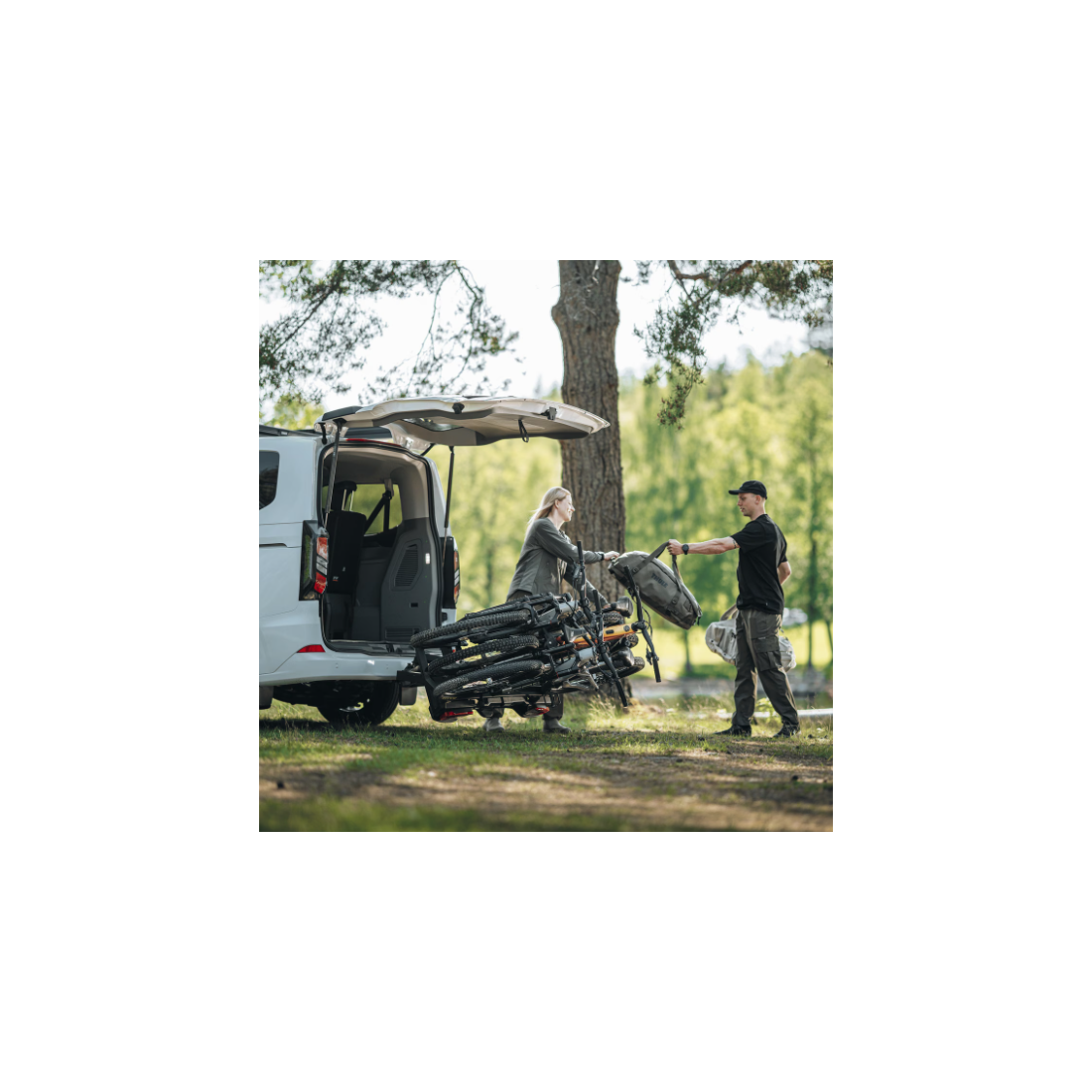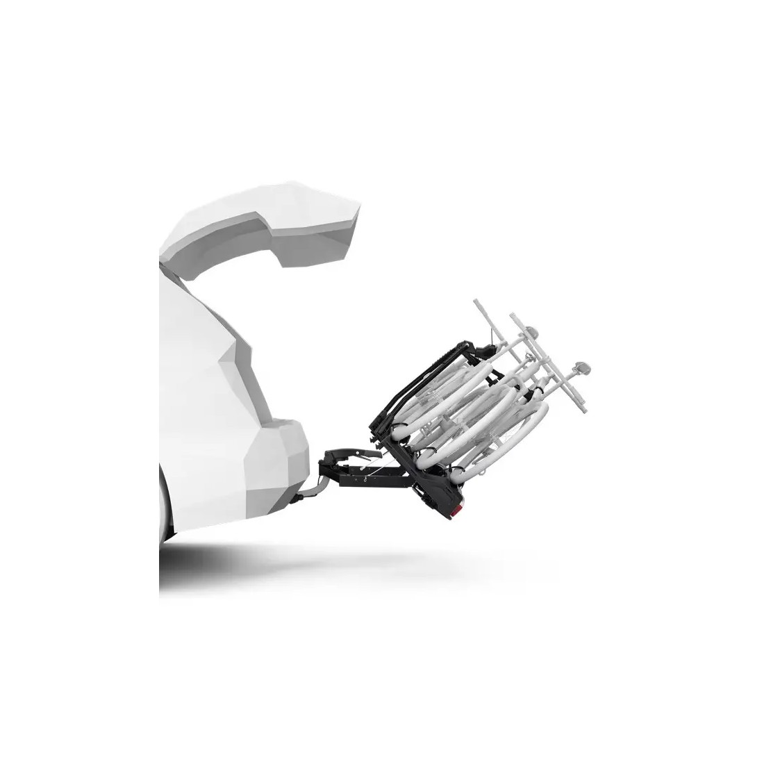 Graças ao sistema rebatível, é possível aceder à bagageira mesmo com as bicicletas carregadas, através do prático pedal de inclinação. O seu design compacto, estrutura em U dobrável e gestão integrada das correias facilitam a montagem, o armazenamento e a utilização diária.