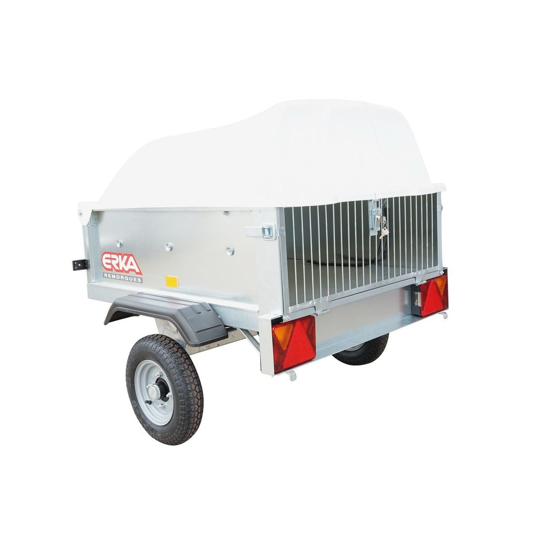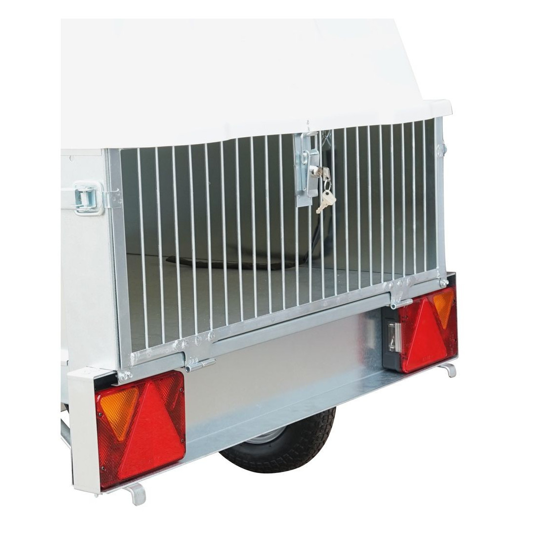 Porta traseira com grelha rebatível intermutável com outra fechada (também incluída). Roda sobressalente incluída.