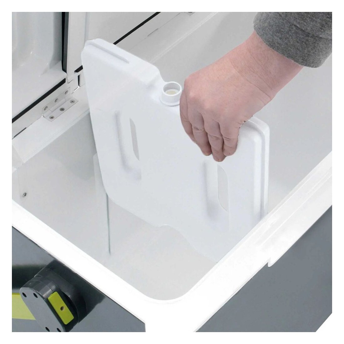 O compartimento de armazenamento é composto por um material com propriedades antimicrobianas