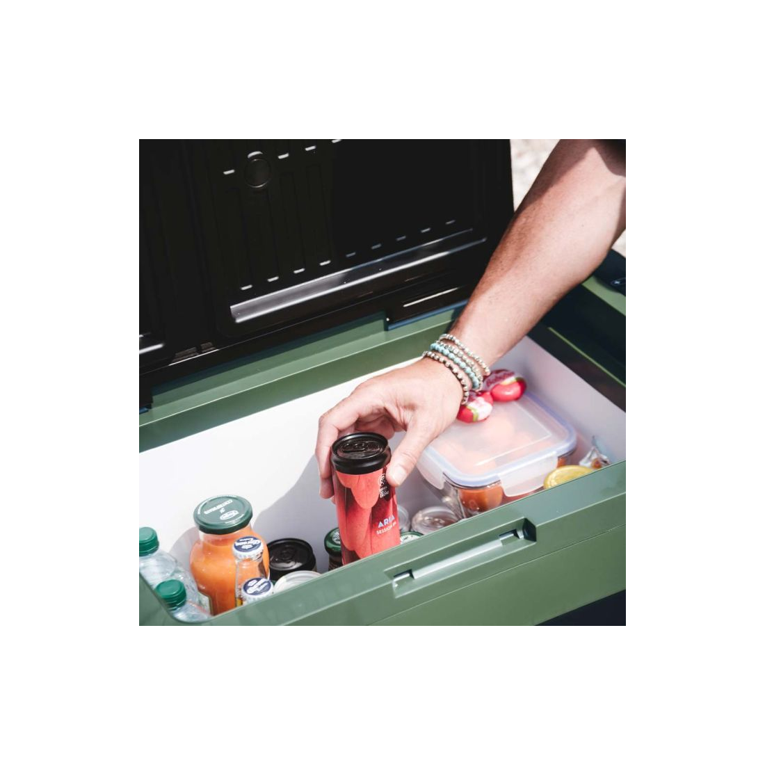 Equipada com um compressor de alto desempenho, esta geleira assegura uma refrigeração rápida e constante, independentemente da temperatura exterior. Este sistema permite atingir níveis de frio estáveis com um consumo otimizado, oferecendo um funcionamento fiável tanto em movimento como em estacionamento prolongado.