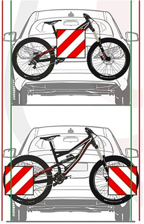 (Por lo tanto, cuando la bicicleta se coloca transversalmente ocupando toda la anchura del vehículo, se deben colocar 2 paneles y no 1)